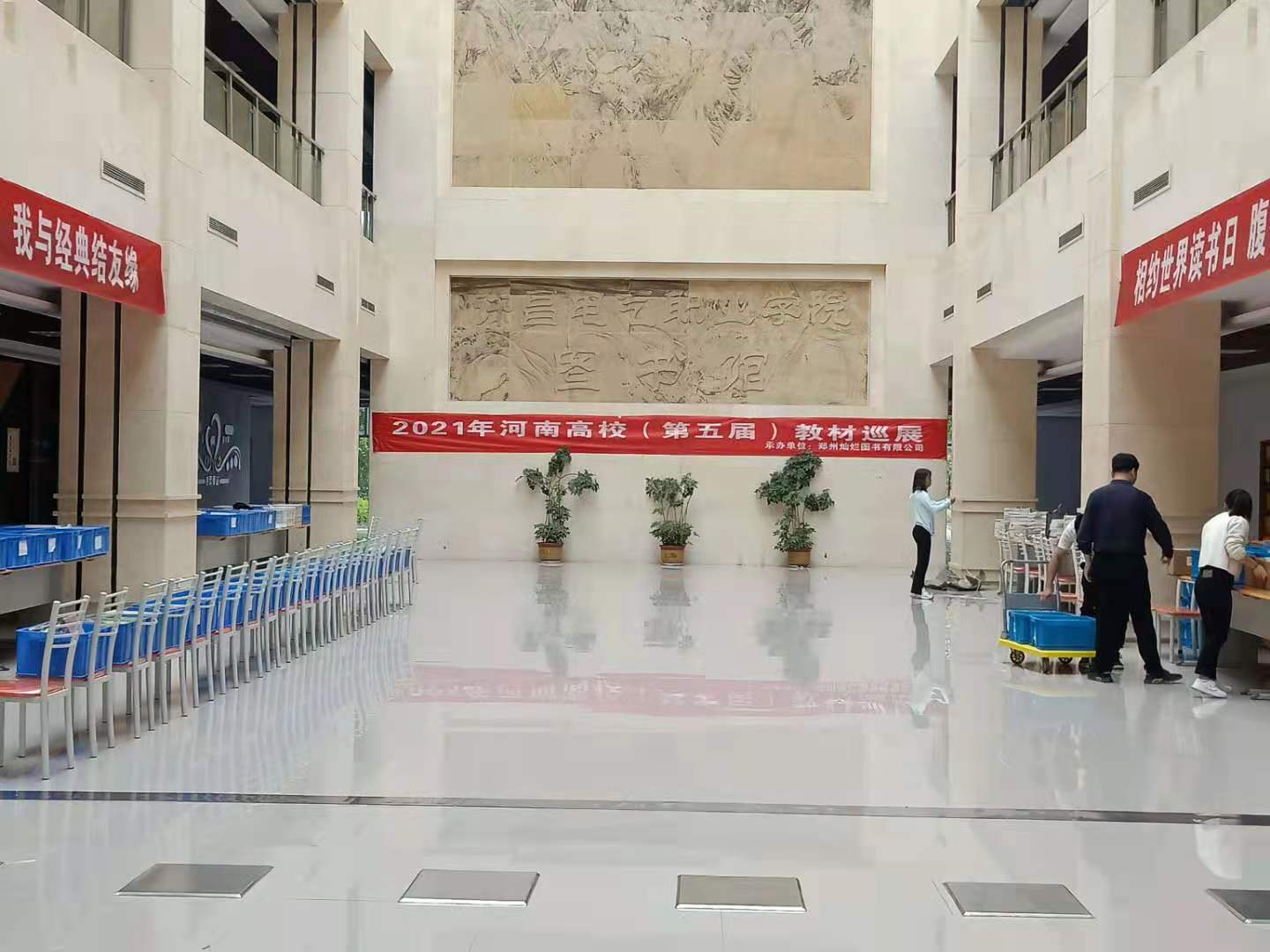 为配合我校正在进行的教材征订工作,确保我校教材选优、选新符合国家的方针、政策,教务处积极组织、筹备、协调,郑州灿烂图书有限公司具体承办了本次的优质教材书展活动,旨在帮助我校教师及时了解知名出版社目前最新的教材建设和教材出版信息,提高我校教材选用质量,进一步推动优质教材进入课堂。学校于2020年5月19日(周三)在图书馆一楼大厅举办2021年优质教材展览活动。