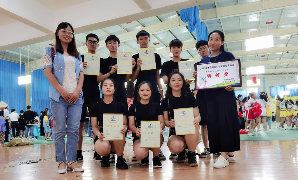 6月19日在2021年许昌市“中国体育彩票杯”第三届青少年啦啦操锦标赛中,许昌电气职业学院啦啦队荣获公开大学组花球自选套路比赛特等奖!