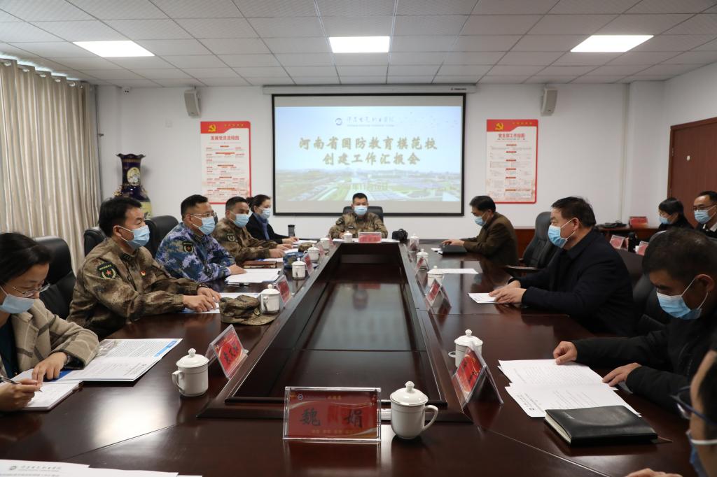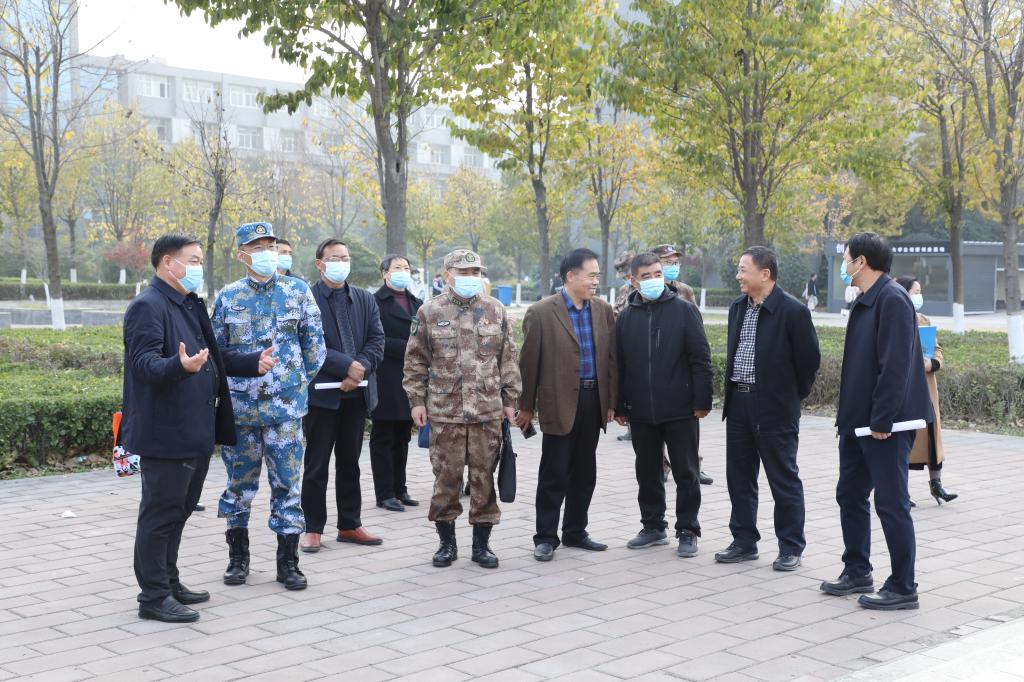 11月16日下午,许昌军分区副司令员李聚国带领考核验收小组一行七人到我院验收指导“河南省国防教育模范高?!贝唇üぷ?。学院在第二会议室举行了汇报会,汇报会由学院院长杨德岭主持,学院副院长冯朝印、工会主席张勇及有关处室第一负责人出席并陪同检查验收。