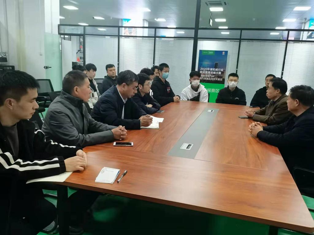 为迎接河南省第一届职业技能大赛,做好赛前准备工作,2021年11月16-17日下午,我院分别在电子技术世赛基地和东行政楼第三会议室召开赛前动员会。学院院长杨德岭、副院长冯朝印,教务处相关人员、各系部负责人、参赛选手、指导教师和专家裁判参加了此次会议,会议由副院长冯朝印主持。