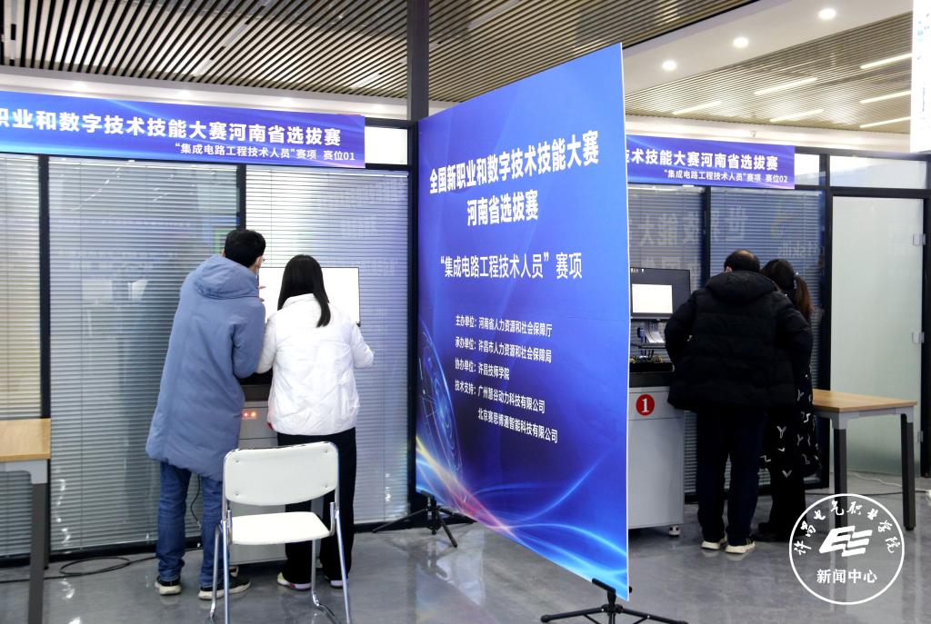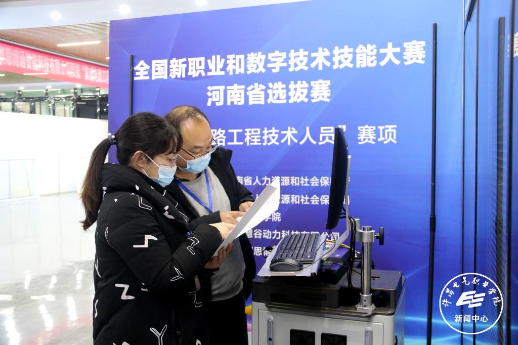 12月23日,2021年全国新职业和数字技术技能大赛河南省选拔赛在我院隆重开幕。本次大赛是由人力资源和社会保障部批准的国家级一类职业技能竞赛,省选拔赛共设20个竞赛项目,其中集成电路工程技术人员、工业互联网工程技术人员、互联网营销师三个赛项由我院承办。来自省内二十多所职业院校52名技能精英齐聚许昌,展示精湛技术、切磋提升技艺、追逐职业梦想。河南省职业技能鉴定中心竞赛二部部长李国军,河南省职业技能鉴定中心竞赛二部白艺珍,许昌市人力资源和社会保障局副局长吴强,许昌市人力资源和社会保障局职业能力建设科科长赵耀,许昌市公共就业服务中心职业技能鉴定服务科科长苗朝旭等一行在院长杨德岭,副院长冯朝印和大赛各工作组相关负责人陪同下莅临大赛现场参观并指导工作。