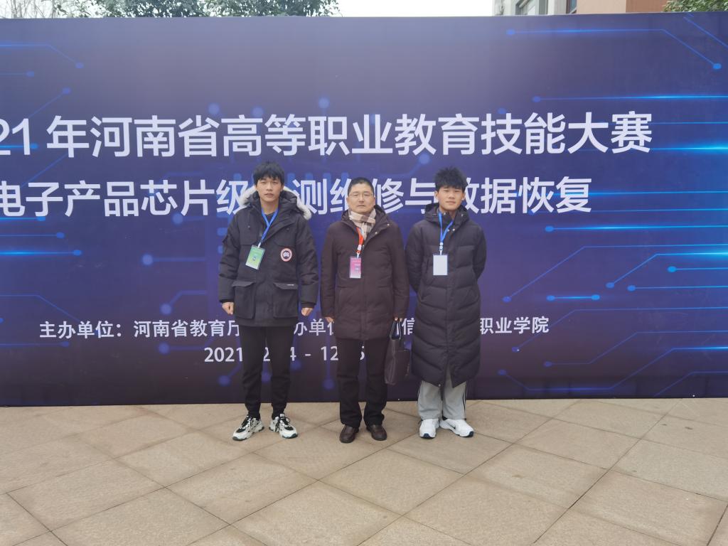 12月24至25日,河南省高等职业教育技能大赛“电子产品芯片级检测维修与数据恢复”赛项在郑州信息科技职业学院举行。我院电气工程系教师李素敏与信息工程系教师王旭指导的学生程博、闫哲,积极备赛,以优异的成绩荣获团队赛二等奖。