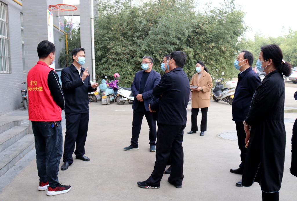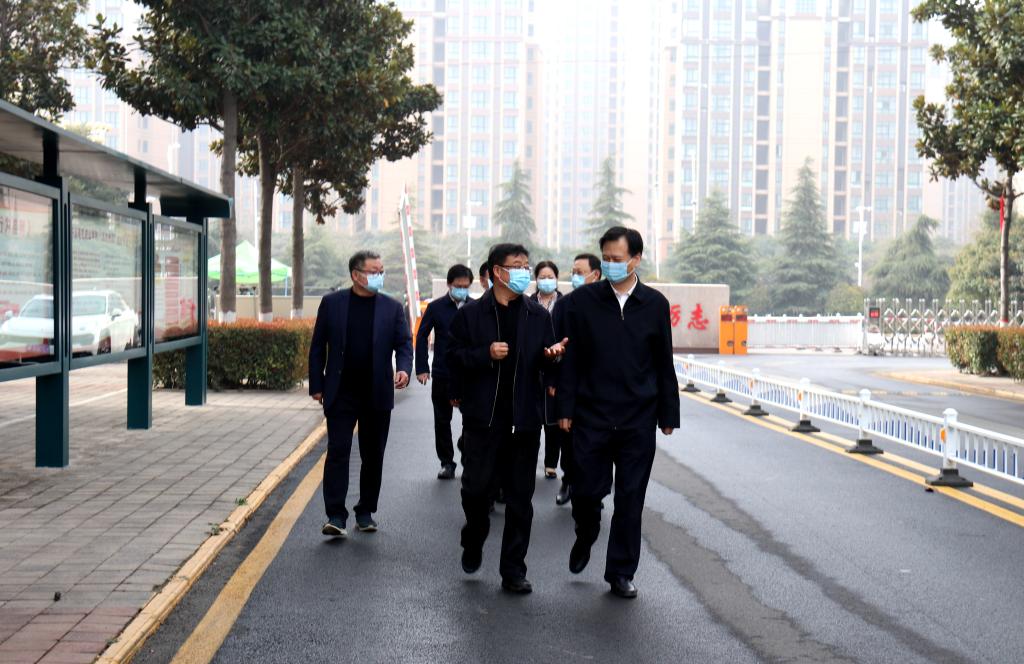 马正兰一行现场察看了学院大门、快递领取点、食堂、隔离点等地,详细询问了学院有关防控措施落实情况。彭占亭、杨德岭详细介绍了师生状况摸排和动态管理、防护物资储备、教学活动、应急预案等疫情防控工作。