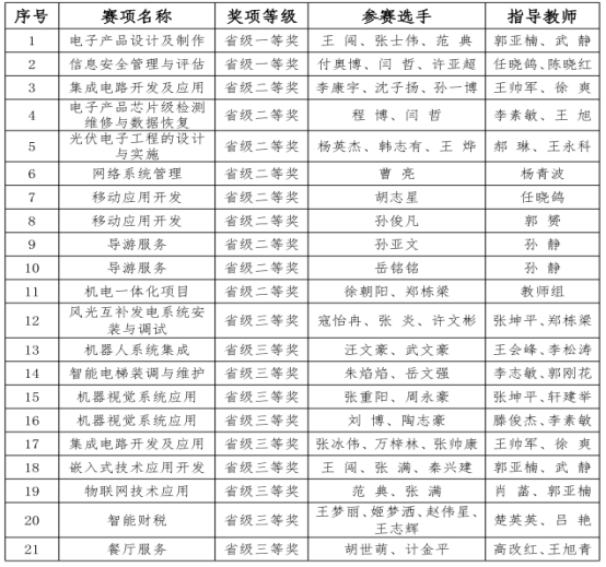 近年来,我校高度重视学生技能大赛在教学中的重要地位,充分发挥学生技能大赛在专业人才培养中的积极作用,优化赛项设置,创新体制机制,建立了校赛、市赛、省赛、国赛、世赛五级联动机制,形成“赛教融合”“赛训融合”的大赛格局,促进了我校高素质技术技能人才培养质量不断提升,在2021年各类职业技能竞赛中取得了显著成效。