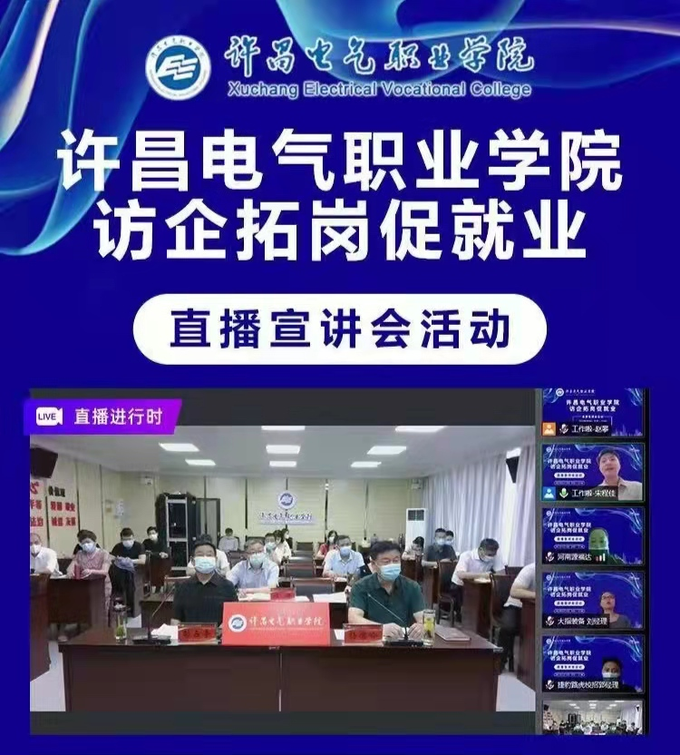 为贯彻落实教育部2022年高校毕业生“百日冲刺”活动部署的具体行动,全面深化校企合作,实现校企供需对接,6月14日,学院开展“访企拓岗云端行 直播荐才促就业”许昌电气职业学院书记校长访企拓岗促就业直播专项行动。院党委书记彭占亭,院长杨德岭,副院长刘涛,党委办公室、院长办公室、招生就业处、各系负责人及相关工作人员参加会议。
