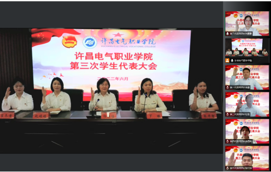 报告回顾了第二次学代会以来学生会的工作成绩,明确了新的工作任务和主要目标,提出了今后的总体思路和前进方向。大会审议并通过了许昌电气职业学院第二届学生会工作报告、选举产生了许昌电气职业学院新一届学生会主席团成员。