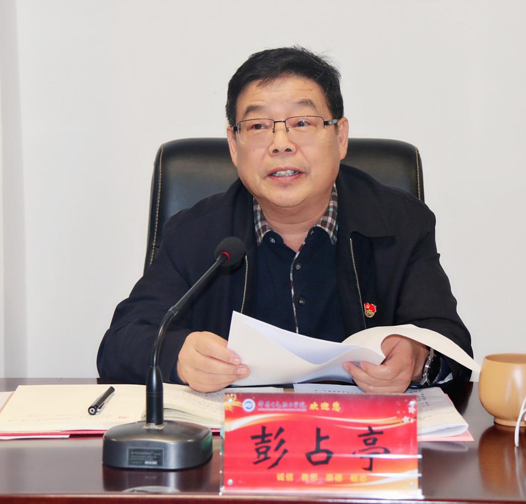 11月11日上午,我院在东行政楼第一会议室召开党委理论学习中心组(扩大)学习会议,学院党委理论学习中心组成员、党委委员、全体县级干部参加会议。会议由党委书记彭占亭主持。