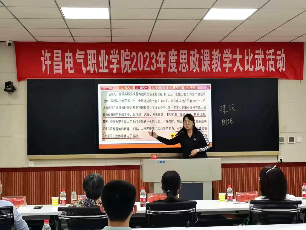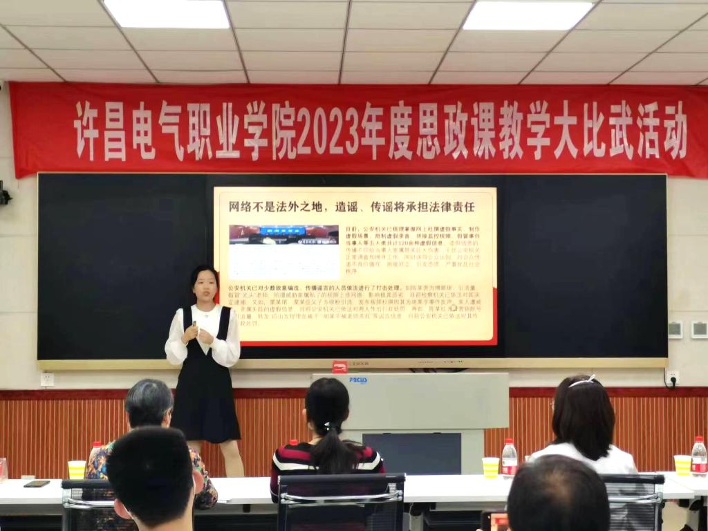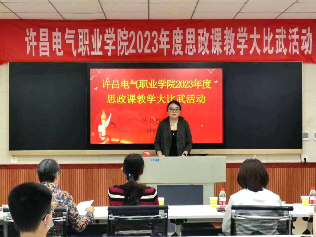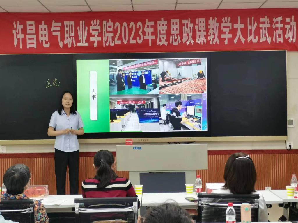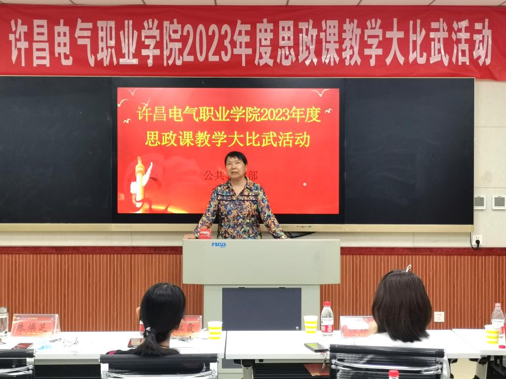 为深入贯彻落实习近平总书记在学校思想政治理论课教师座谈会上的重要讲话精神,不断提升学院思政课教学质量和育人水平,5月31日下午,我院2023年度思政课教学大比武活动在实训楼A226录播教室进行。大赛特邀请纪委副书记高红霞、教务处处长朱焕芝、学生处处长杨红培、机电工程系党总支书记刘建刚、公共教学部党总支书记郭雯担任评委。