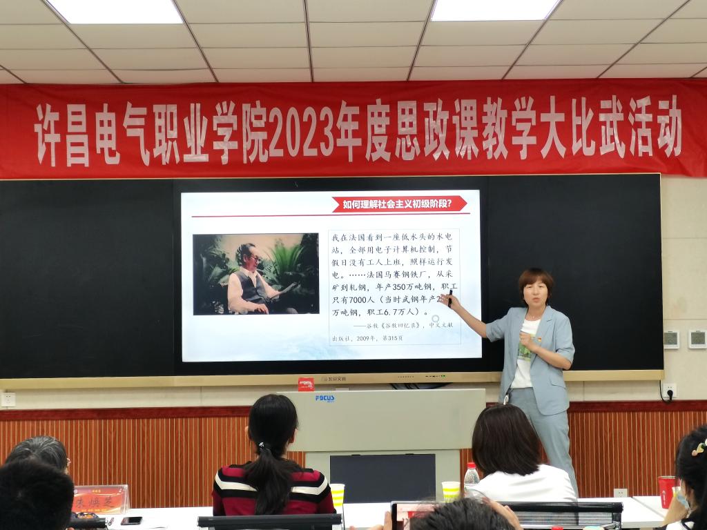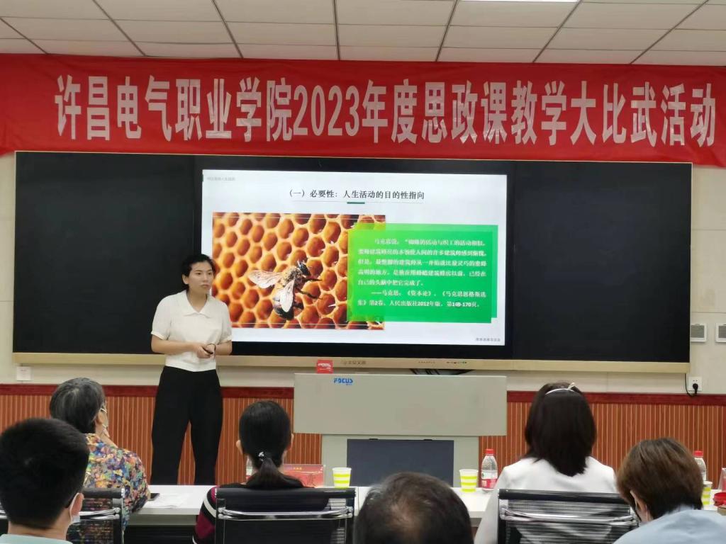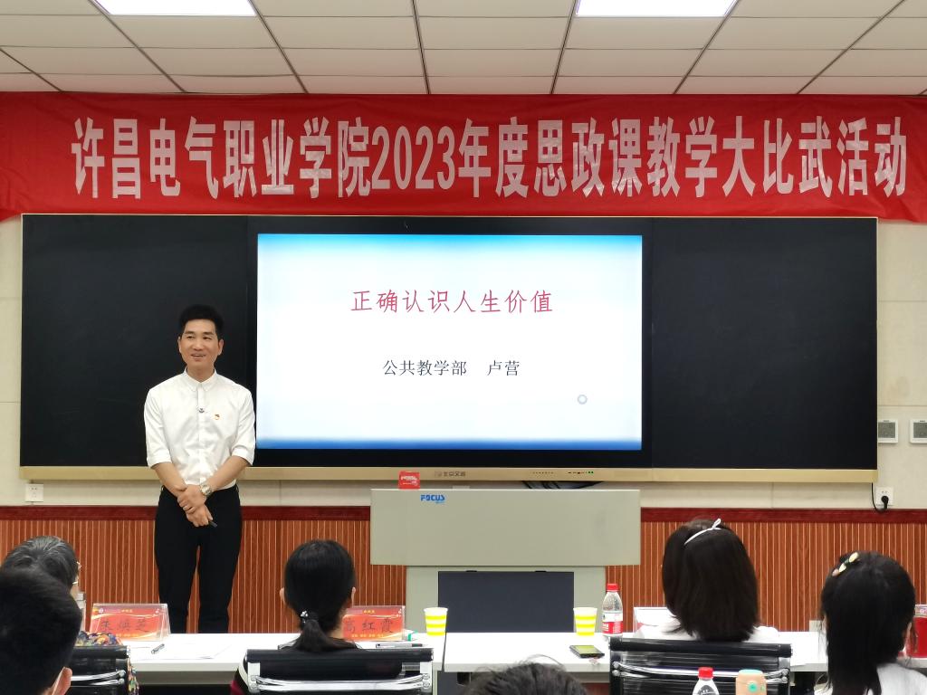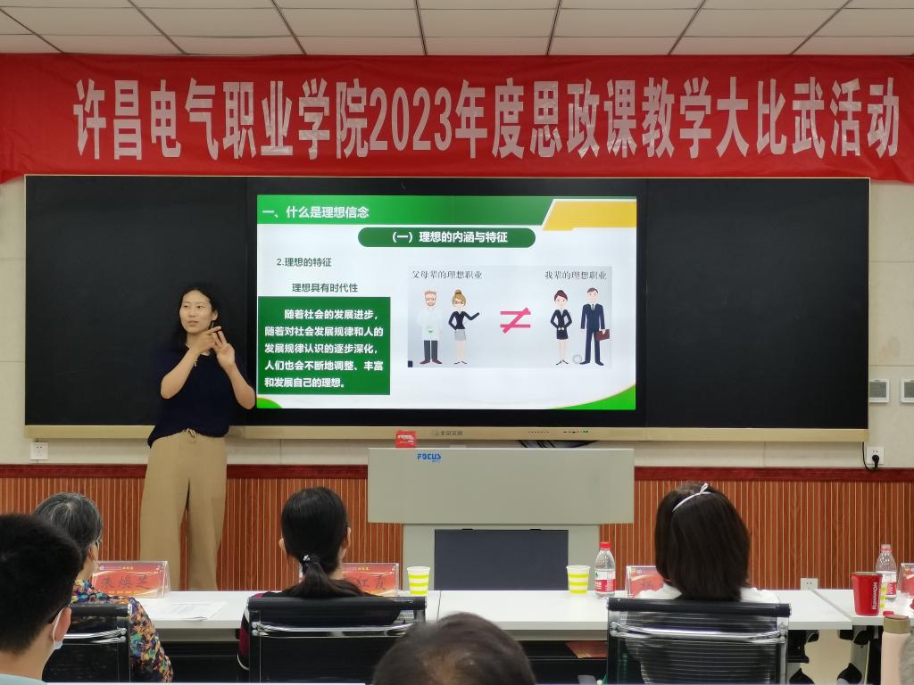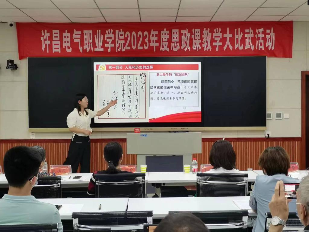 为深入贯彻落实习近平总书记在学校思想政治理论课教师座谈会上的重要讲话精神,不断提升学院思政课教学质量和育人水平,5月31日下午,我院2023年度思政课教学大比武活动在实训楼A226录播教室进行。大赛特邀请纪委副书记高红霞、教务处处长朱焕芝、学生处处长杨红培、机电工程系党总支书记刘建刚、公共教学部党总支书记郭雯担任评委。