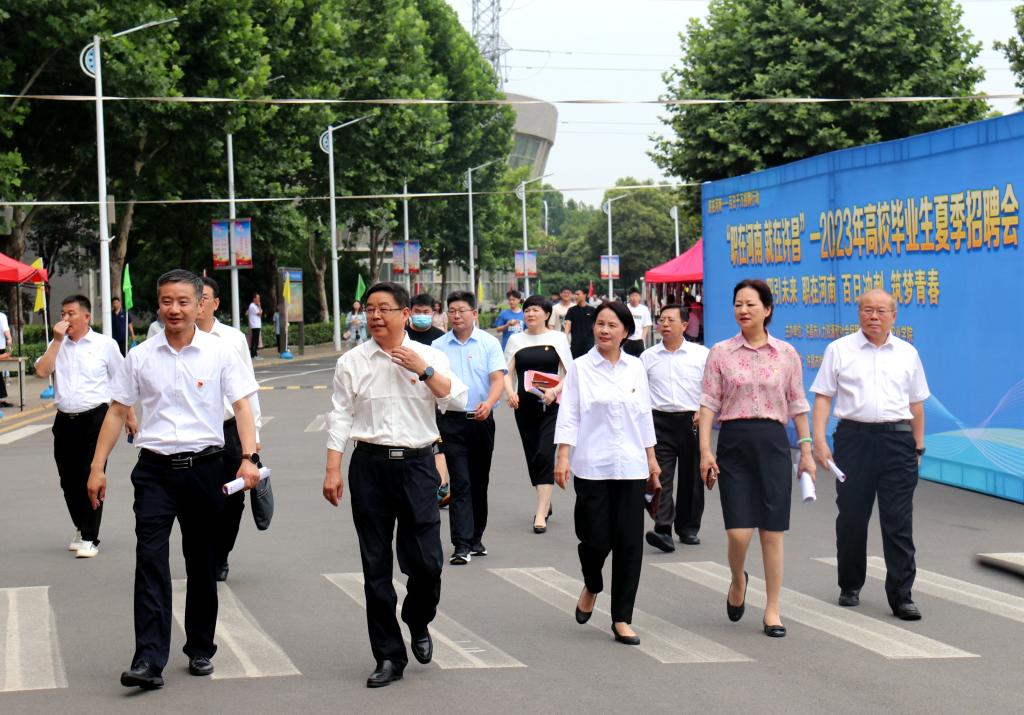 为全面贯彻党的二十大精神,认真落实党中央、国务院和省委省政府关于促进大学生就业工作的决策部署,搭建学校、企业、学生沟通交流合作平台,保证学生高质量充分就业,6月29日,“职引未来 职在河南 百日冲刺 筑梦青春”许昌市2023届毕业生双向选择洽谈会许昌电气职业学院专场在我院成功举行。院党委书记彭占亭,党委副书记张明慧,工会主席张贵军,副院长商淑敏,纪委书记张晓华,副院长朱东煜、张俊才到场指导工作。