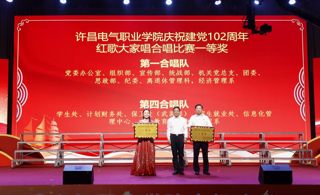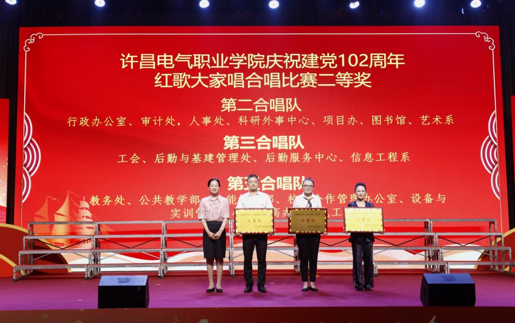 经过激烈角逐,第一合唱队、四合唱队获得一等奖,第二合唱队、第三合唱队、第四合唱队获得二等奖。院党委书记彭占亭,党委副书记张明慧为获奖队伍颁奖。