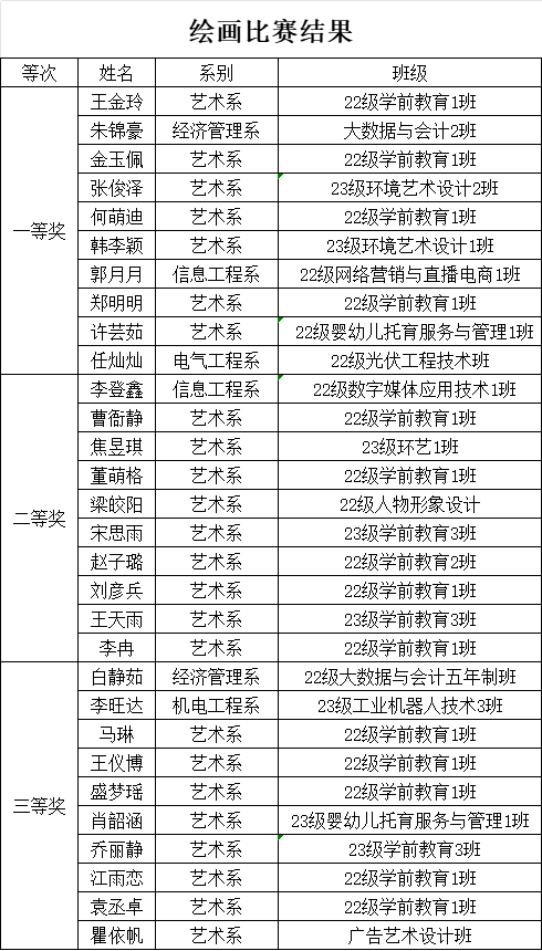 本次大赛共有632名选手参赛报名,最终评选出书法组、绘画组一、二、三等奖各10名,具体名单如下: