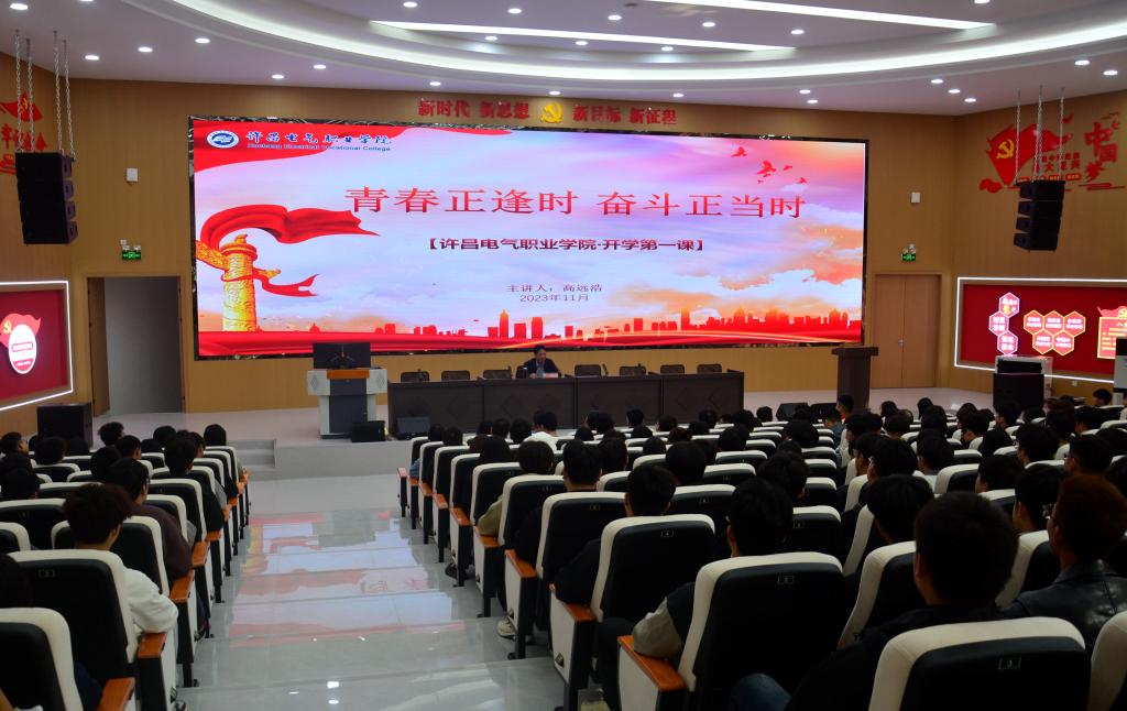 高远浩从“立足当下,追随理想之光,挺膺担当共赴时代”“重视学业,传承工匠精神,乐学笃行共勉成长”“踔厉奋发,永怀崇德之心,向善尚美共创未来”三方面进行了讲解,他指出许昌电气职业学院是一所蕴含创新气质和自强品格的职业院校,也是一所拥有广阔前景、发展势头强劲的职业院校。当前,国家重视职业教育,一技之长,能动天下,职业教育“春耕”时代俨然已经到来。同学们生逢其时,已经站在了新时代职业教育高速发展的主要阵地上,应认识到职业教育逐渐提升的社会地位,自我激励,自我肯定,抓住机遇,不怕吃苦,认真学习,在学校不断提升技能,深刻感悟技能文化,砥砺传承工匠精神。