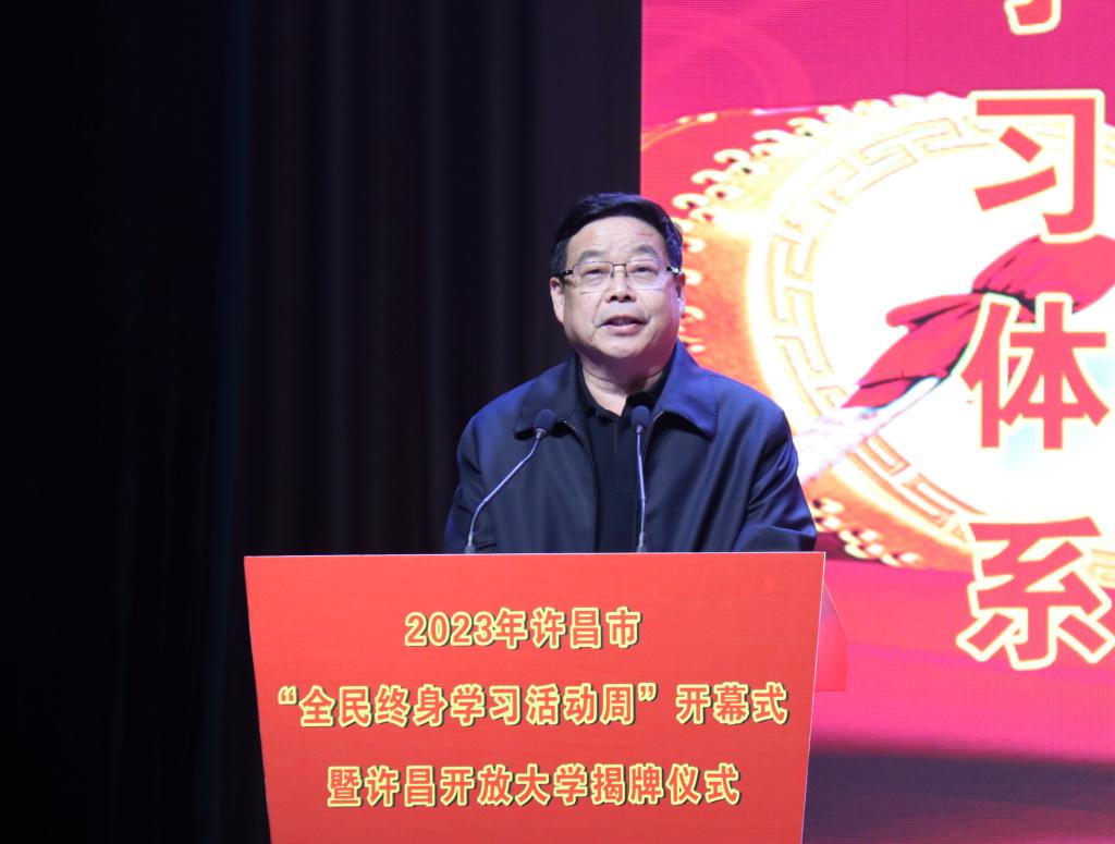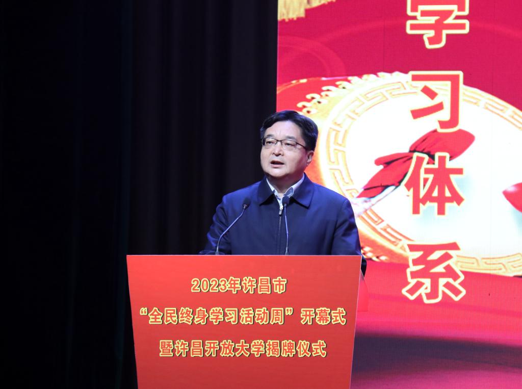 许昌市人民政府副市长赵鹏宣布“2023年许昌市全民终身学习活动周开幕”