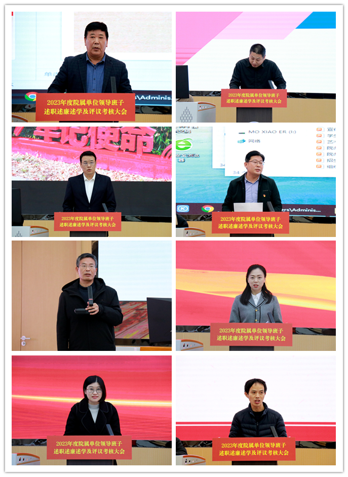 为切实落实各单位主体责任,聚焦高质量发展核心主题,进一步改善工作作风,提升工作积极性、主动性、前瞻性、创造性和成效性,1月19日,学院召开2023年度院属单位领导班子述职述廉述学及评议考核大会。学院领导班子成员、党委委员,院属各单位党政负责同志,干部代表及教师代表参与考核评议。党委副书记张明慧主持会议。