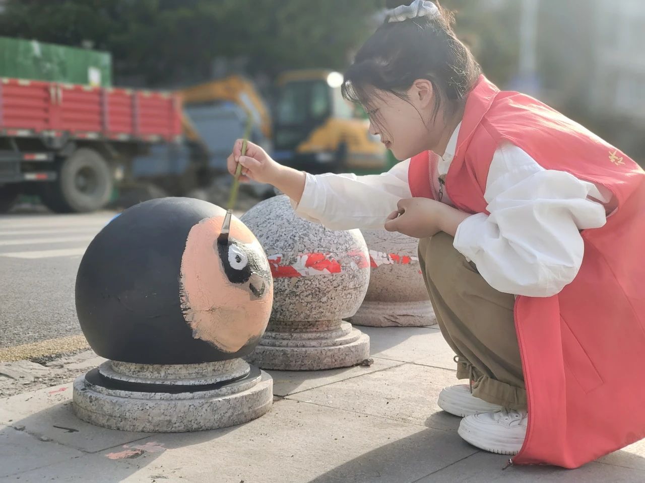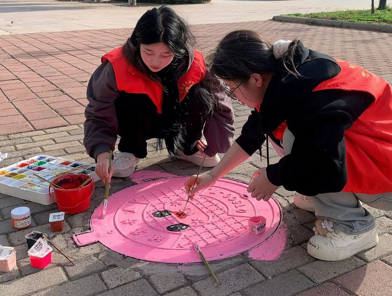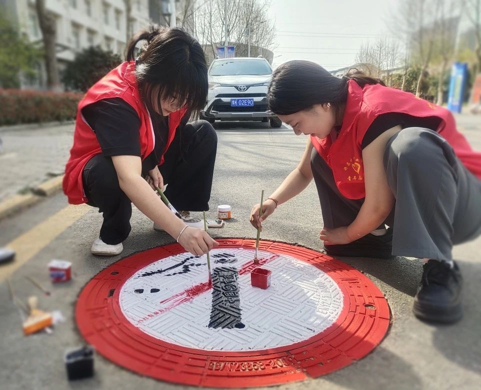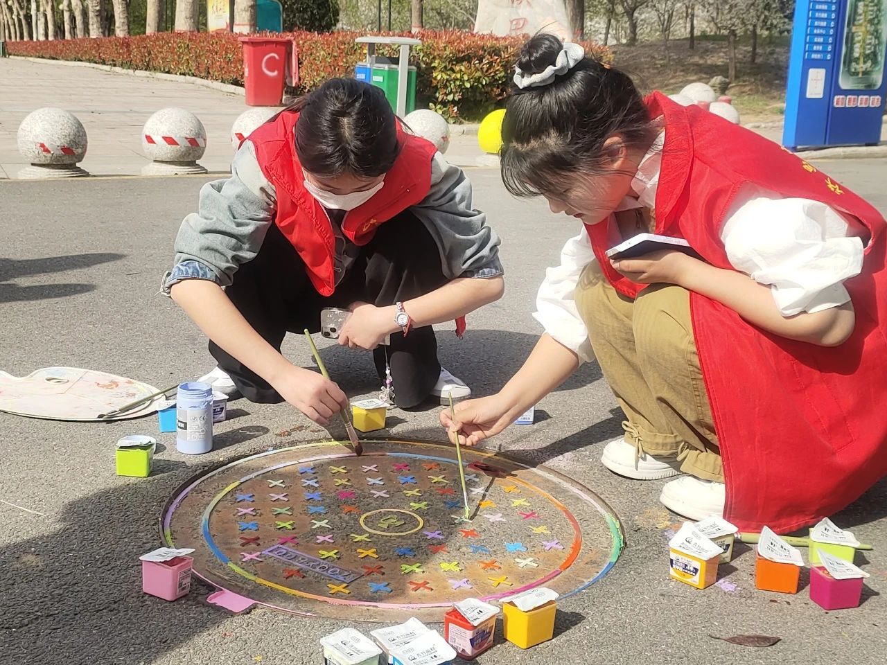 我院青年志愿者协会组织志愿者开展校园角落涂鸦活动,志愿者们在井盖上、石墩上进行彩绘,提醒行人注意安全,让学院的石墩和井盖都穿上了新衣。