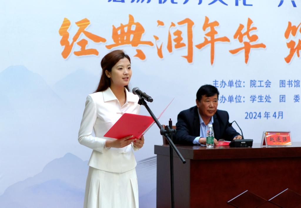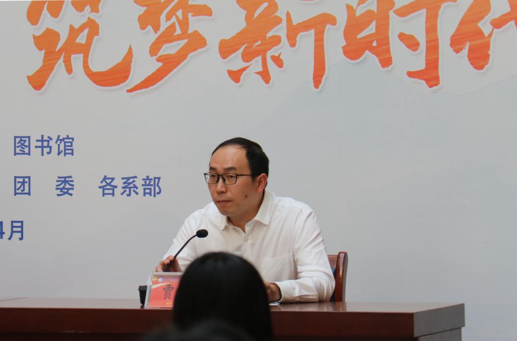 仪式上,图书馆负责人赵遂强介绍了本次读书活动的具体安排和特色内容,此次活动将围绕“经典润年华?筑梦新时代”的主题,开展一系列丰富多彩的阅读推广活动,包括阅读分享会、图书馆电子资源推广、经典诵读比赛、“你读书我买单”、教职工捐书、读‘习言习语’塑青年团魂等活动。