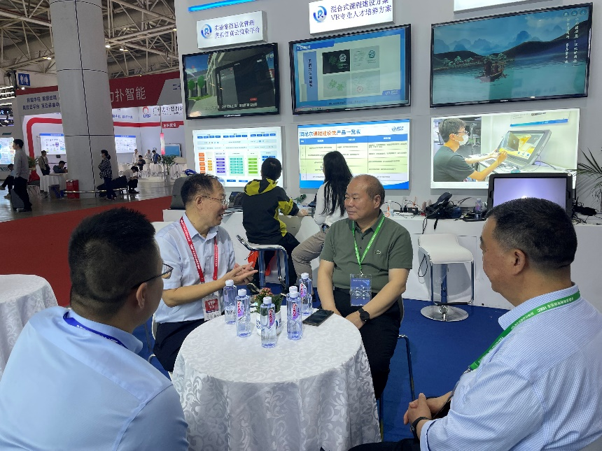 此次博览会汇集了全国众多高校和教育机构,展示了高等教育领域的最新成果与发展趋势。学院代表团充分利用博览会的平台,与多家单位进行了深入交流,探讨了未来合作的可能,为学院发展注入了新的活力。参展期间,张俊才一行先后参观了实验室及科研仪器设备展区、实训及机电展区、信息化及智慧教育展区,与多家企业就智慧教育赋能教学改革、推进教育数字化转型、增强教学资源的互联互通等进行了详细讨论。同时,围绕许昌电气职业学院建校发展历程、专业建设成效,分享了我院在立德树人、教育教学改革等方面的成功经验和创新成果。张俊才表示,与企业的交流不仅可以加深双方的合作理解,更为学院未来的发展规划提供了有力支持和借鉴,通过这次参观和交流,学院将进一步深化产教融合,加快教育数字化转型的步伐,为学生提供更优质的教学资源和更广阔的发展平台。