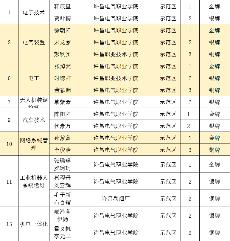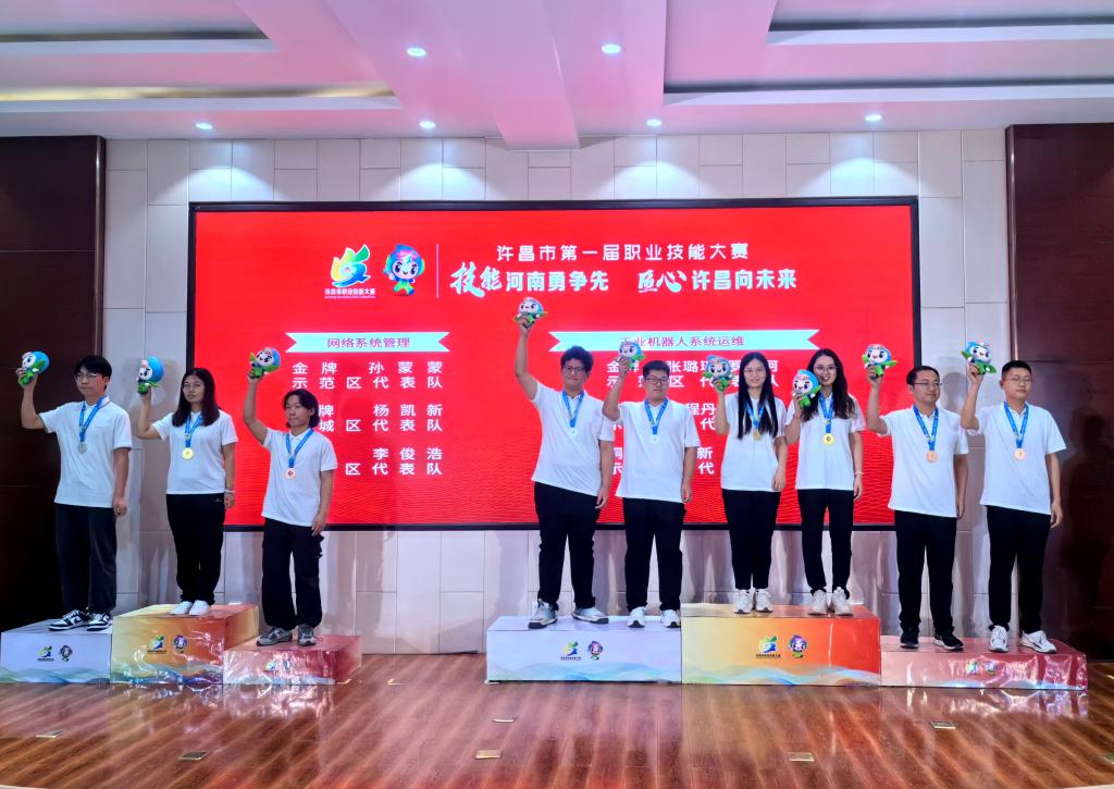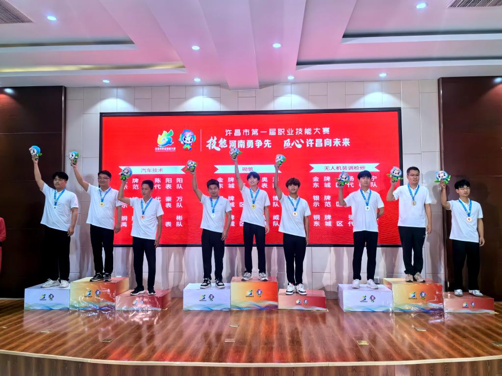 5月30日,许昌市第一届职业技能大赛经过3天的激烈角逐圆满闭幕。本次大赛以“技能河南勇争先,匠心许昌向未来”为主题,共设置13个赛项。我院共有25位选手,参加了电子技术、电气装置、工业机器人系统运维、汽车技术、网络系统管理、数控车、电工、机电一体化、无人机装调检修、餐厅服务等10个赛项的比拼,最终斩获6金6银3铜的优异成绩。