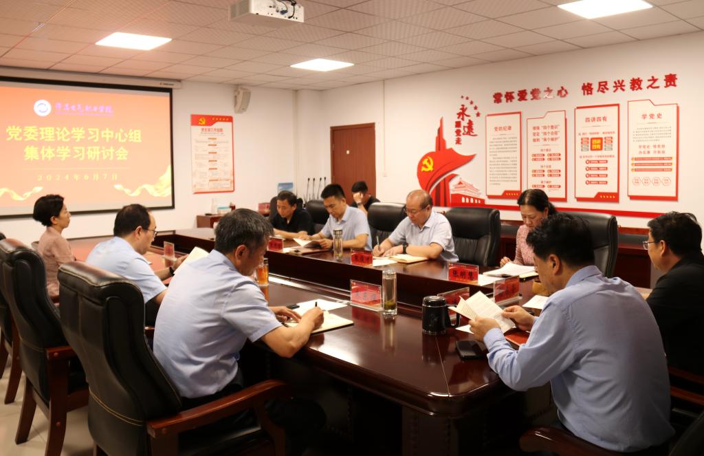 根据党纪学习教育工作安排,6月7日上午,学院党委理论学习中心组举行集体学习研讨,认真学习习近平总书记《论党的自我革命》和《中国共产党纪律处分条例》关于廉洁纪律、群众纪律的有关要求。学院领导班子成员、党委委员参加学习,会议由党委书记彭占亭主持。