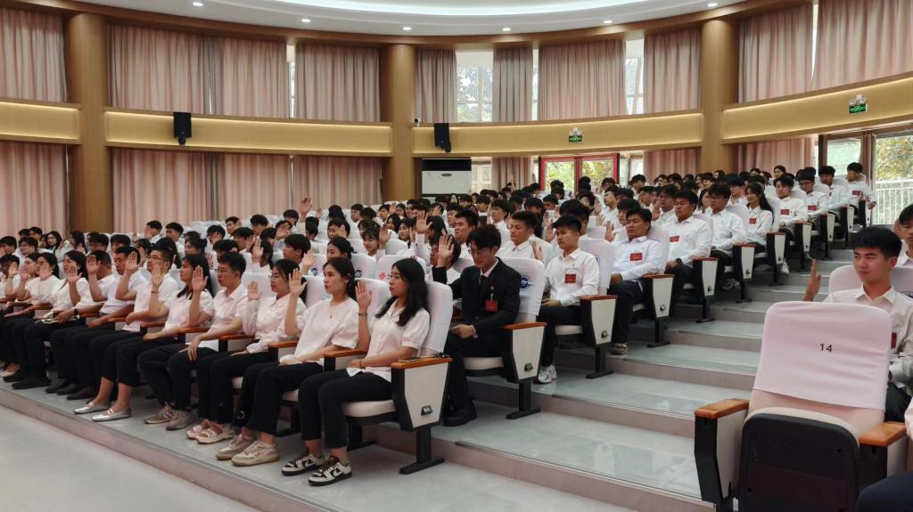 张明慧在讲话中充分肯定了我院学生会在加强校风学风建设、丰富校园文化、维护校园安全稳定、提高青年学生综合素质等方面做出的突出贡献,并向青年学子提出三点希望:一是坚持红心向党、把握青春航向。共青团要引导广大青年学生铸牢精神根基,践行习近平总书记重要讲话精神,坚定不移听党话、跟党走,永远站在理想信念的高地上,用党的科学理论武装青年、用党的初心使命感召青年、用党的光辉旗帜指引青年、用党的优良作风塑造青年。二是勇于挺膺担当、践行青春誓言。各级学生会组织要牢记全心全意服务同学的根本宗旨,充分发挥好党联系青年学生的桥梁和纽带作用,心系同学、服务同学、引导同学,想同学之所想、急同学之所急、解同学之所难。要锲而不舍、持续用力、久久为功,不断增强团学工作的“深度”,努力提高团学工作的“温度”,适时改进团学工作的“效度”,持续拓宽团学工作的“广度”。三是矢志建功立业、激扬青春理想。新时代的中国青年,生逢其时、重任在肩。在新的征程上,广大青年要牢记习近平总书记的谆谆教导,弘扬接续奋斗的优良传统,发扬吃苦耐劳、自力更生的拼搏精神,克服一切不思进取、耽于安逸、躺平佛系的消极思想,在经济发展、科技创新、文化教育、民主法治、乡村振兴、社会治理、志愿服务以及美丽中国建设等各领域各方面工作中迸发青年独有的创新热情和创造勇气。