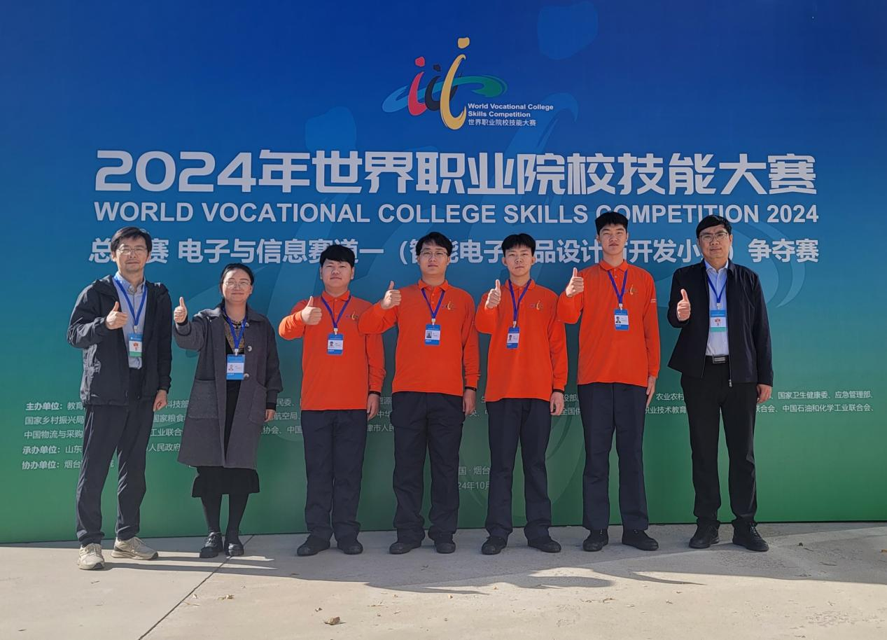 10月28-30日,2024年世界职业院校技能大赛总决赛争夺赛高职组电子与信息赛道——智能电子产品设计与开发小组争夺赛在烟台职业学院举行。来自全国30个省、市、自治区及新疆生产建设兵团61支队伍的233名选手参加了争夺赛。经过激烈角逐,由我校电气工程学院学生娄彦旭、毛登科、介含啸、张满组成的参赛队,在电子技术专家团队老师(指导老师:武静、肖菡)指导下荣获全国银奖,实现了我校职业技能大赛成绩的新突破,为我校申报新一轮“双高”校提供了有力支撑。