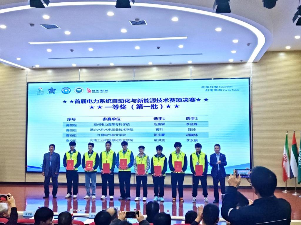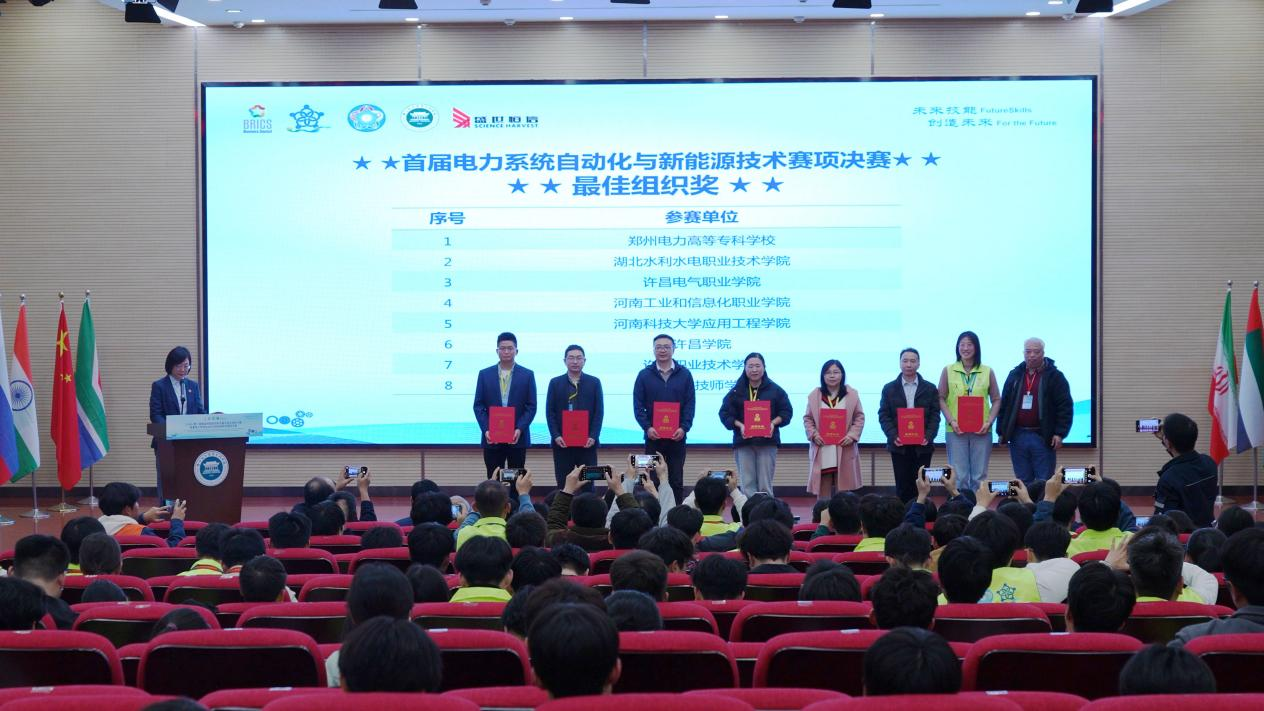 11月19日-11月21日,2024年一带一路暨金砖国家技能发展与技术创新大赛首届电力系统自动化与新能源技术赛项全国总决赛在郑州电力高等专科学校举行。大赛吸引力了全国70支高校队伍报名参赛,经过激烈角逐,我校电气工程学院学生祖庆豪、胡巍林(指导老师:邵淑敏、罗帅)荣获全国一等奖(金牌),电气工程学院学生曹福泉、何峰(指导老师:夏德印、郑栋梁)荣获全国三等奖(铜牌),同时学校获得最佳组织奖。