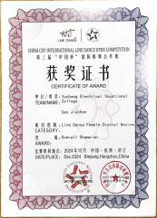公共教学部高嘉晨老师获得“水晶组初级全能组冠军”;艺术与设计学院2022级空中乘务一班倪芸获得“公开年龄组初级全能组冠军”;电气工程学院2023级电力系统自动化技术三班姬亦聪获得“公开年龄组初级街舞项目亚军”;我校排舞原创曲目获得第三名。