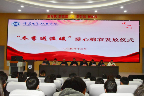 12月20日上午,我院在VR思政中心举行2024年“冬季送温暖”爱心棉衣发放仪式。副院长朱东煜出席仪式,学生处相关人员,各二级学院主要负责人、团总支书记、资助老师以及全体受助学生参加发放仪式。仪式由学生处副处长黄聪主持。