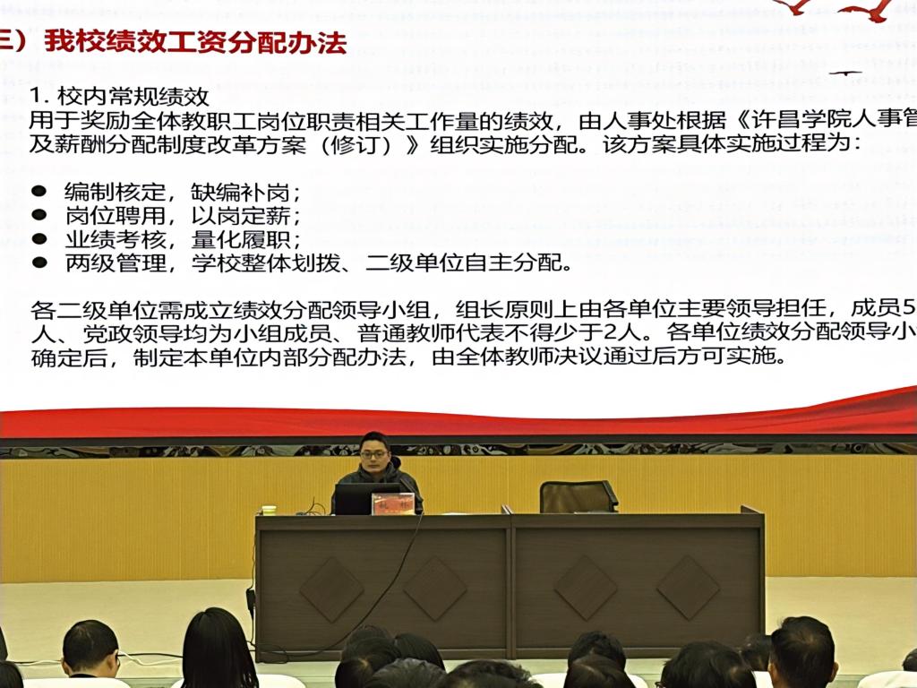 此次培训旨在凝聚发展共识、优化资源分配机制,为学院高质量发展提供有力支撑。培训有效提升了教职工对绩效工资改革的参与积极性,后续将成立专项工作组,加快推进绩效工资改革细则修订工作。