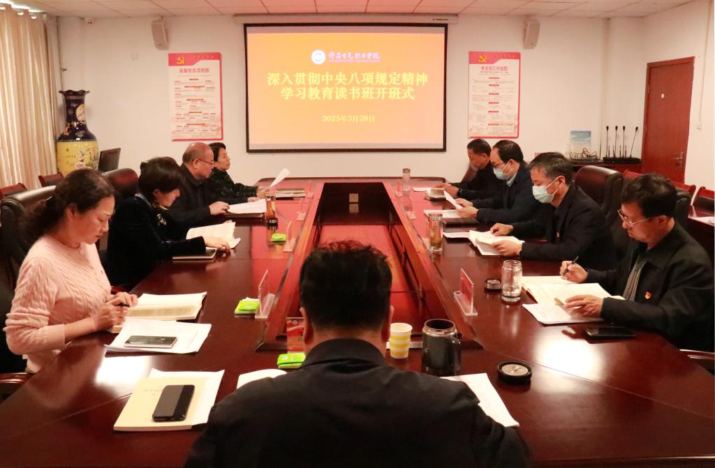 3月28日上午,我院深入贯彻中央八项规定精神学习教育读书班在行政楼第二会议室开班。院党委副书记、院长高远浩主持并讲话,党委理论学习中心组成员参加学习。