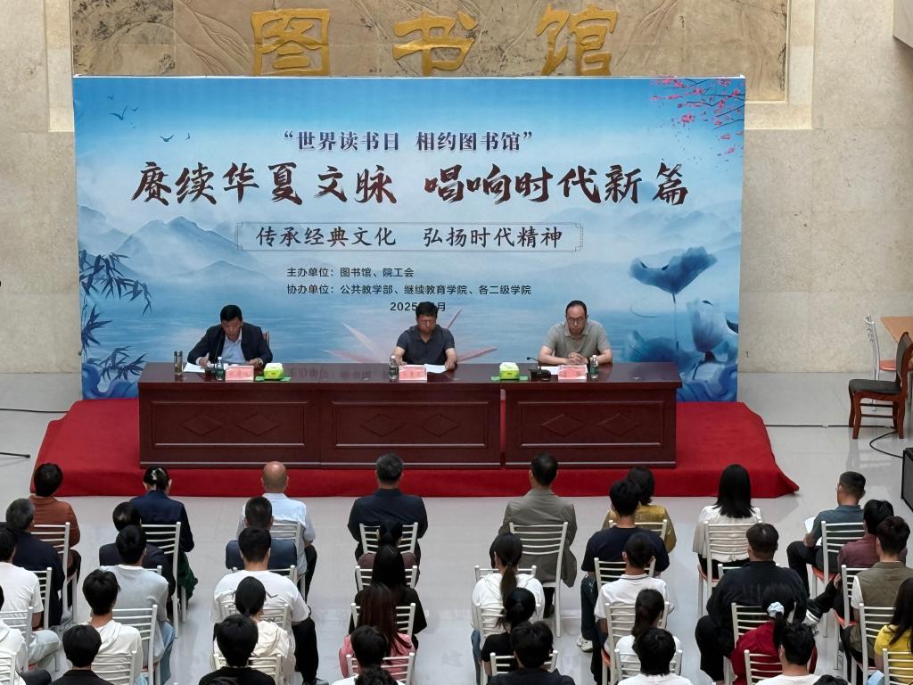图书馆负责人赵遂强详细介绍了本次读书节活动的具体安排和特色内容,将开展一系列丰富多彩的阅读推广活动,包括专家讲座、文创手工作坊、主题诵读大赛、读书分享沙龙、经典文学影视赏析会、读者联谊交流活动等活动。
