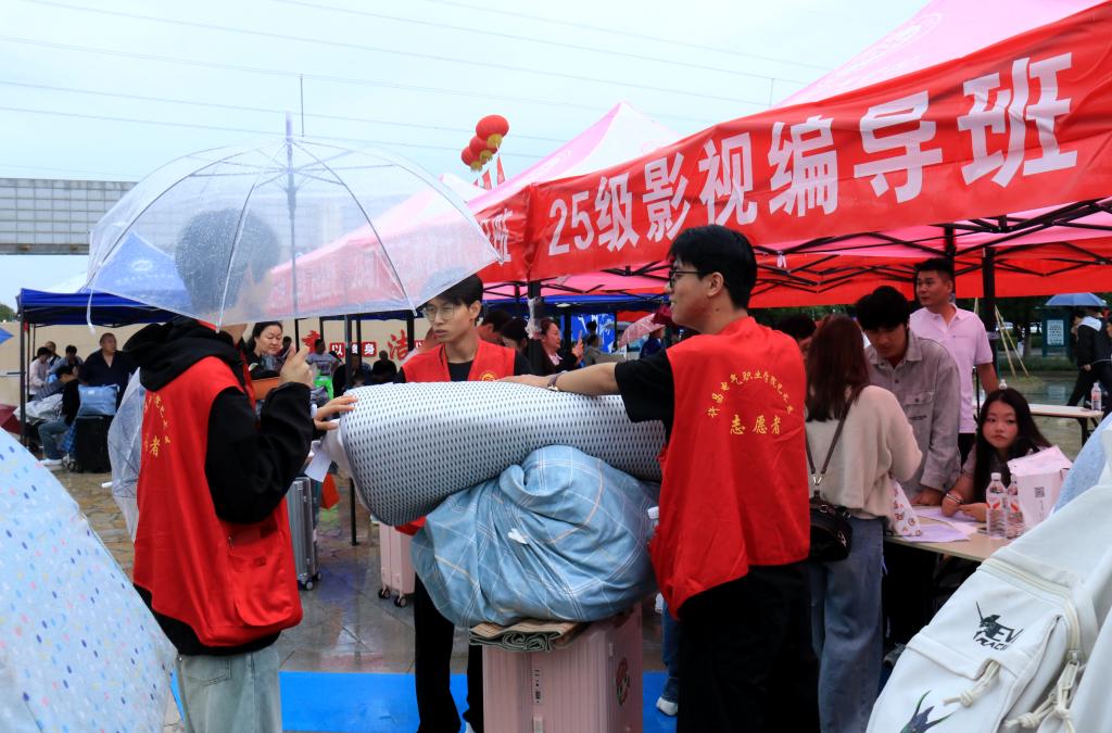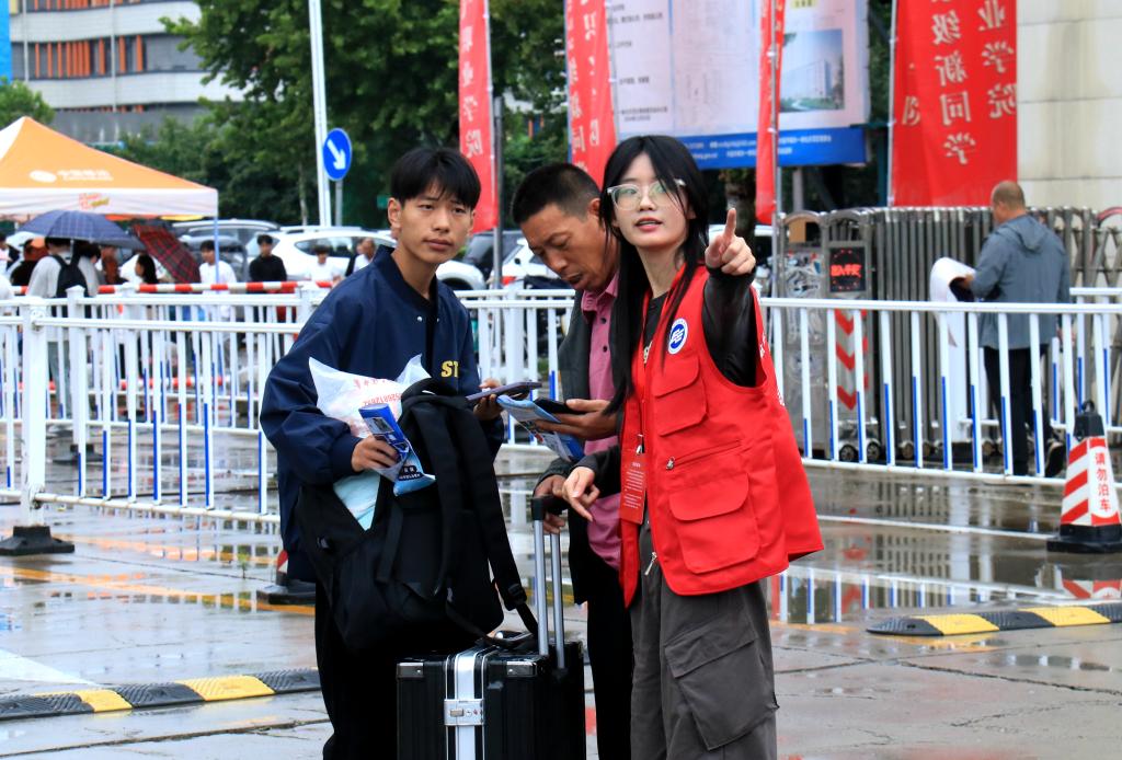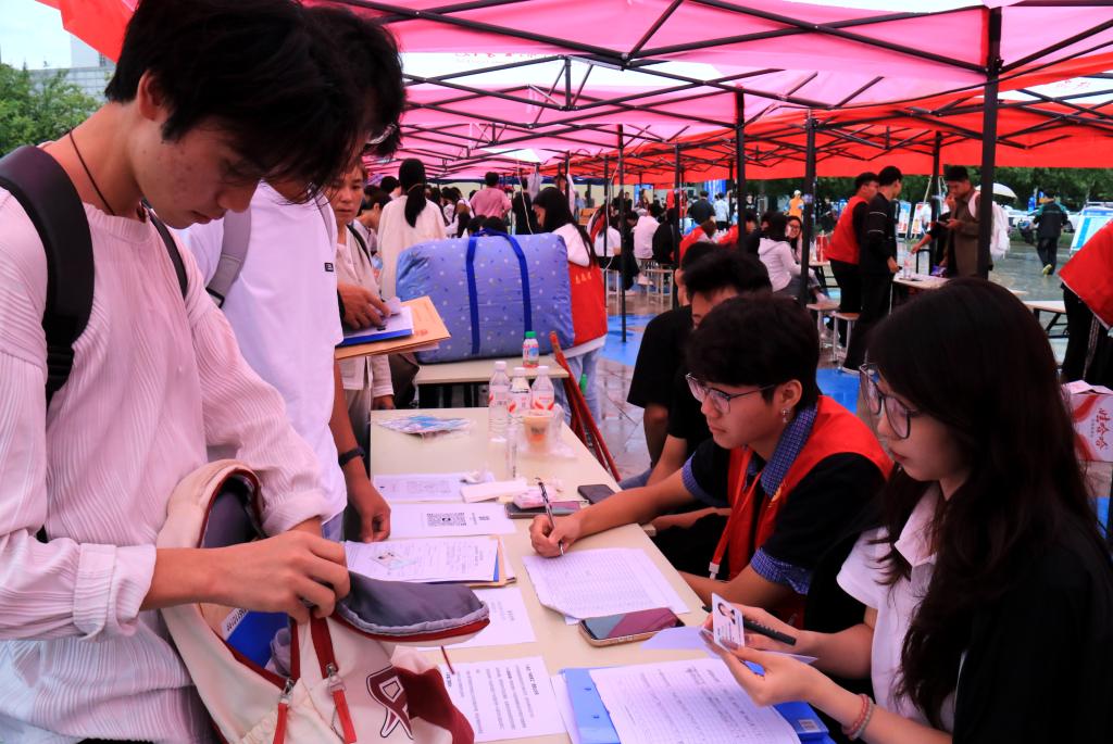 进入校园后,便捷服务持续“在线”。校园内循环运行的免费摆渡车,专门为携带大件行李的新生提供接送服务,直达各宿舍楼栋;各二级学院迎新点前,辅导员和志愿者们分工明确,协助新生完成报到二维码扫码确认、宿舍钥匙领取等最后环节。