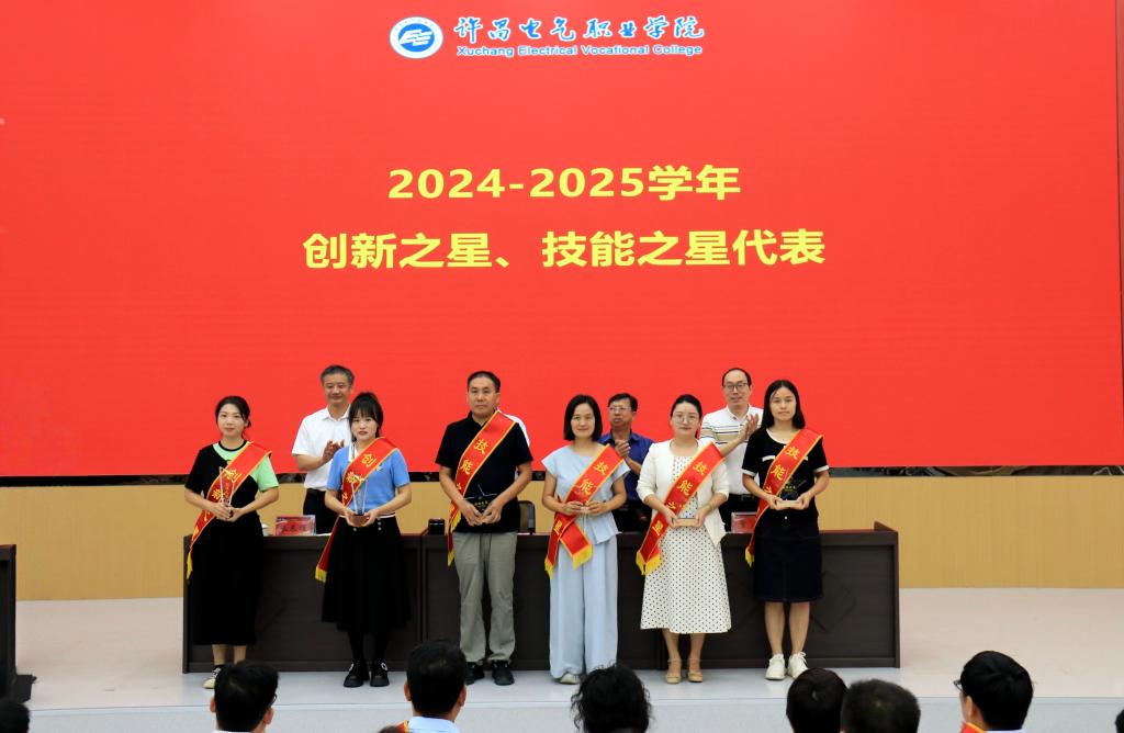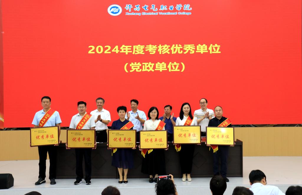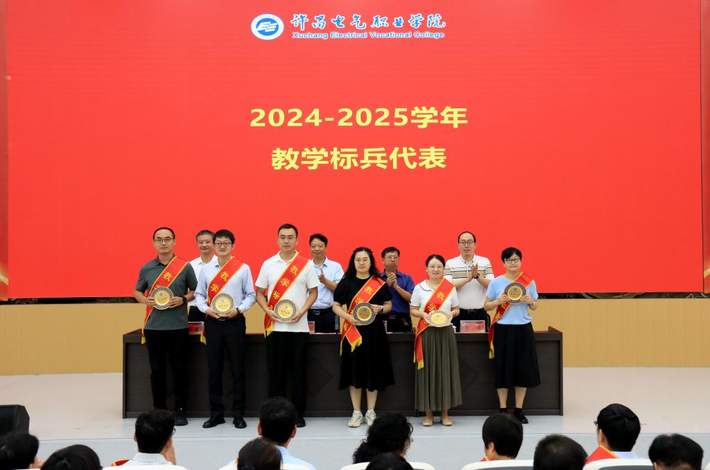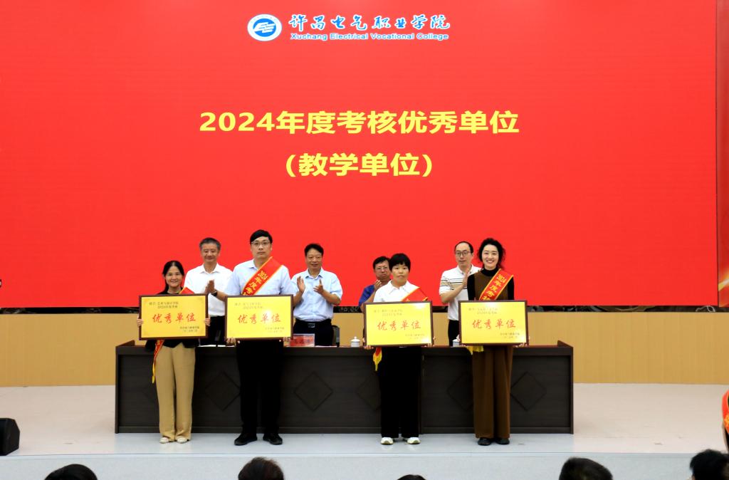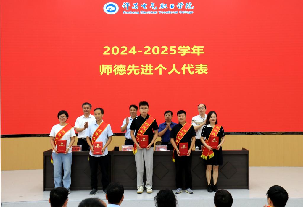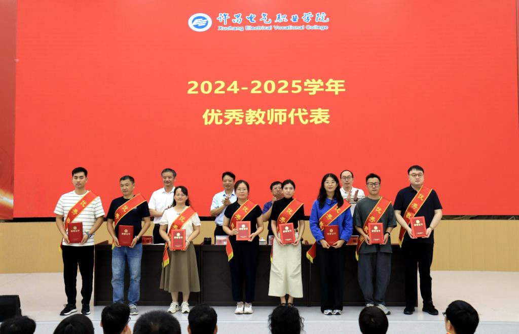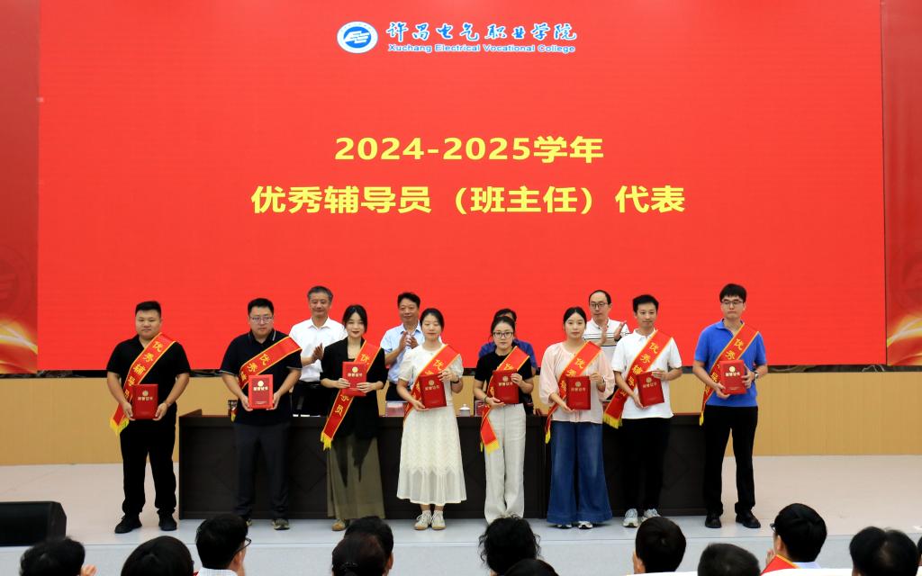 会上,贾楠宣读了《许昌电气职业学院关于表扬河南省第二十届大学生科技文化艺术活动获奖教师的决定》、《许昌电气职业学院关于表彰2024—2025学年优秀辅导员(班主任)的决定》、《许昌电气职业学院关于表彰2025年度先进个人的决定》。朱东煜宣读了《许昌电气职业学院关于表彰第十七届“挑战杯”河南省大学生课外学术科技作品竞赛获奖教师的决定》、《许昌电气职业学院关于表彰2024—2025学年职业技能竞赛获奖教师的决定》、《许昌电气职业学院关于表彰2024—2025学年教学竞赛获奖教师的决定》。张贵军宣读了《许昌电气职业学院关于表扬2024年度考核优秀单位的通报》。