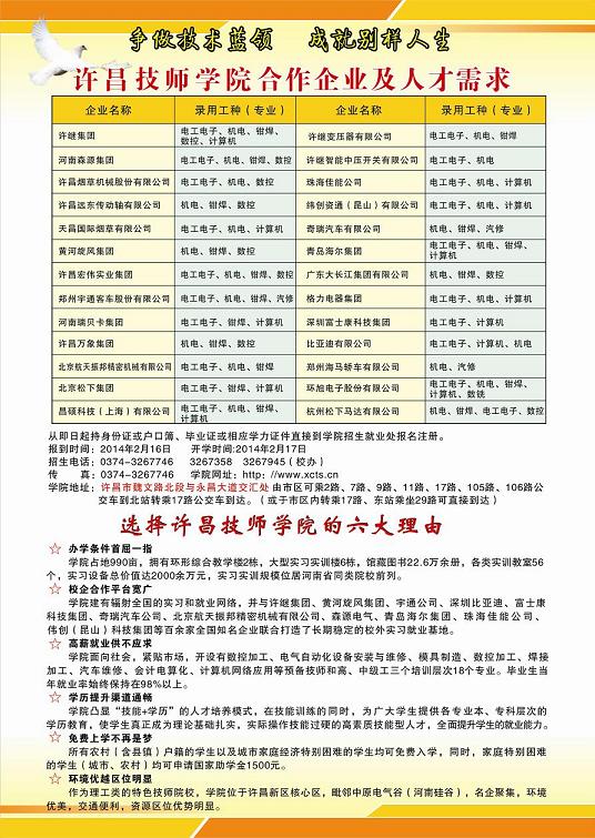 地址:河南省许昌市魏文路与永昌大道(北环路)交叉口 电话:0374-3189898传真电话:0374-3189889 招生就业处电话:0374-3189962网络管理中心制作维护 E-mail:xcdqxy@163.com