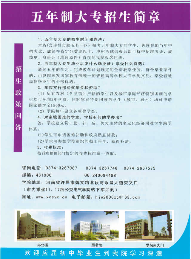 地址:河南省许昌市魏文路与永昌大道(北环路)交叉口 电话:0374-3189898传真电话:0374-3189889 招生就业处电话:0374-3189962网络管理中心制作维护 E-mail:xcdqxy@163.com