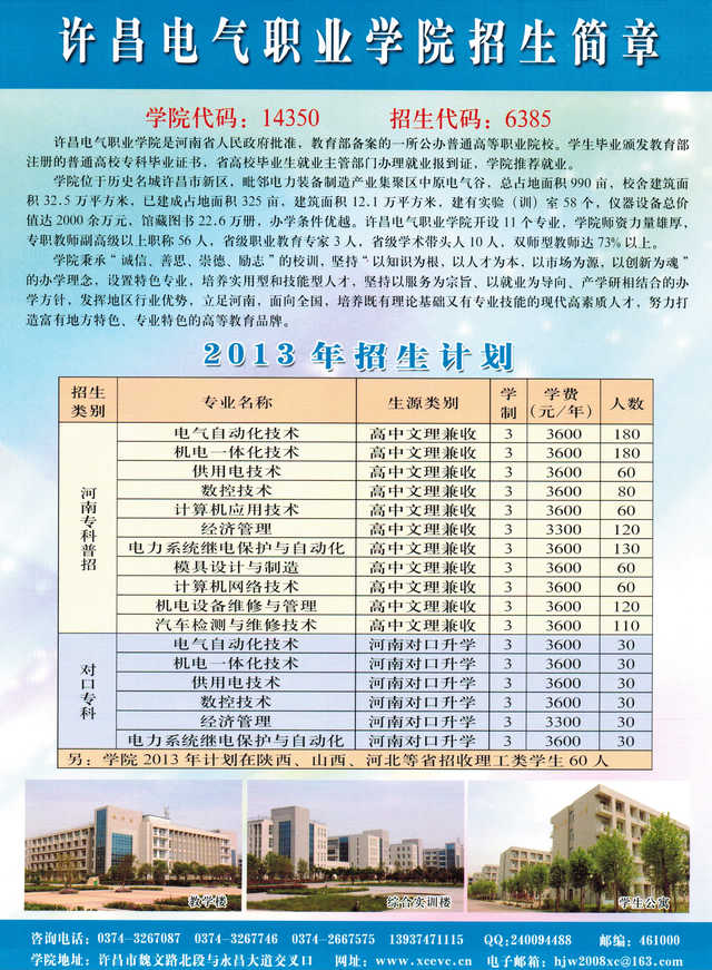 许昌电气职业学院2013年招生简章