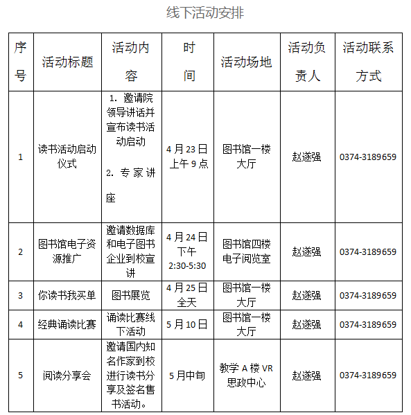 为弘扬尊重知识、崇尚文明的阅读理念,深入推进“全民阅读”活动,激发我院师生阅读兴趣,逐步养成爱读书、读好书、善读书的良好习惯,营造书香校园文化氛围,在第29个“世界读书日”来临之际,经研究举办许昌电气职业学院第九届读书活动。现将有关事宜通知如下:
