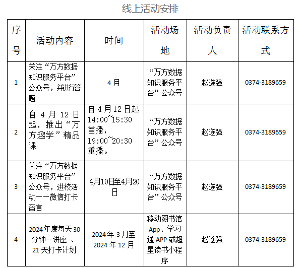 4.举行电子图书、数据库推广培介会,地址:图书馆四楼电子阅览室。