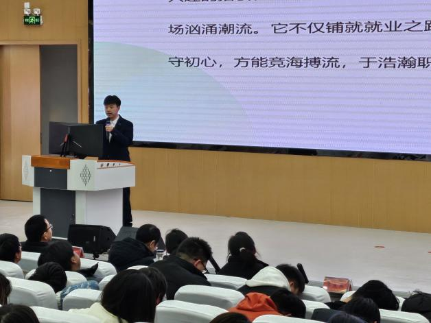 为加强对学生的生涯教育和就业指导,引导学生科学合理规划学业与职业发展,12月24日上午,学院在思政VR报告厅举办第二届大学生职业规划大赛校赛。此次大赛邀请各二级学院就业创业工作负责人、教师担任评委。招生就业处有关负责人、选手指导教师,以及200多名学生代表现场观摩。
