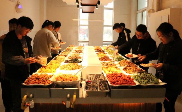 ????辣子鸡、鱼香茄子、青椒肉丝、白灼菜心,这是河南省许昌电气职业学院电气系学生董永旭11月8日的午餐,“荤素搭配,配上米饭和粥,不到10元钱,省钱又美味。”他说。