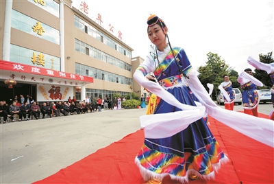 10月9日,许昌市绿园老年公寓,许昌电气职业学院的志愿者在为老人们表演歌伴舞《神山颂》。当日是重阳节,许昌电气职业学院组织志愿者来到许昌市绿园老年公寓开展慰问活动,为这里的老人带来精彩的节目以及慰问品。