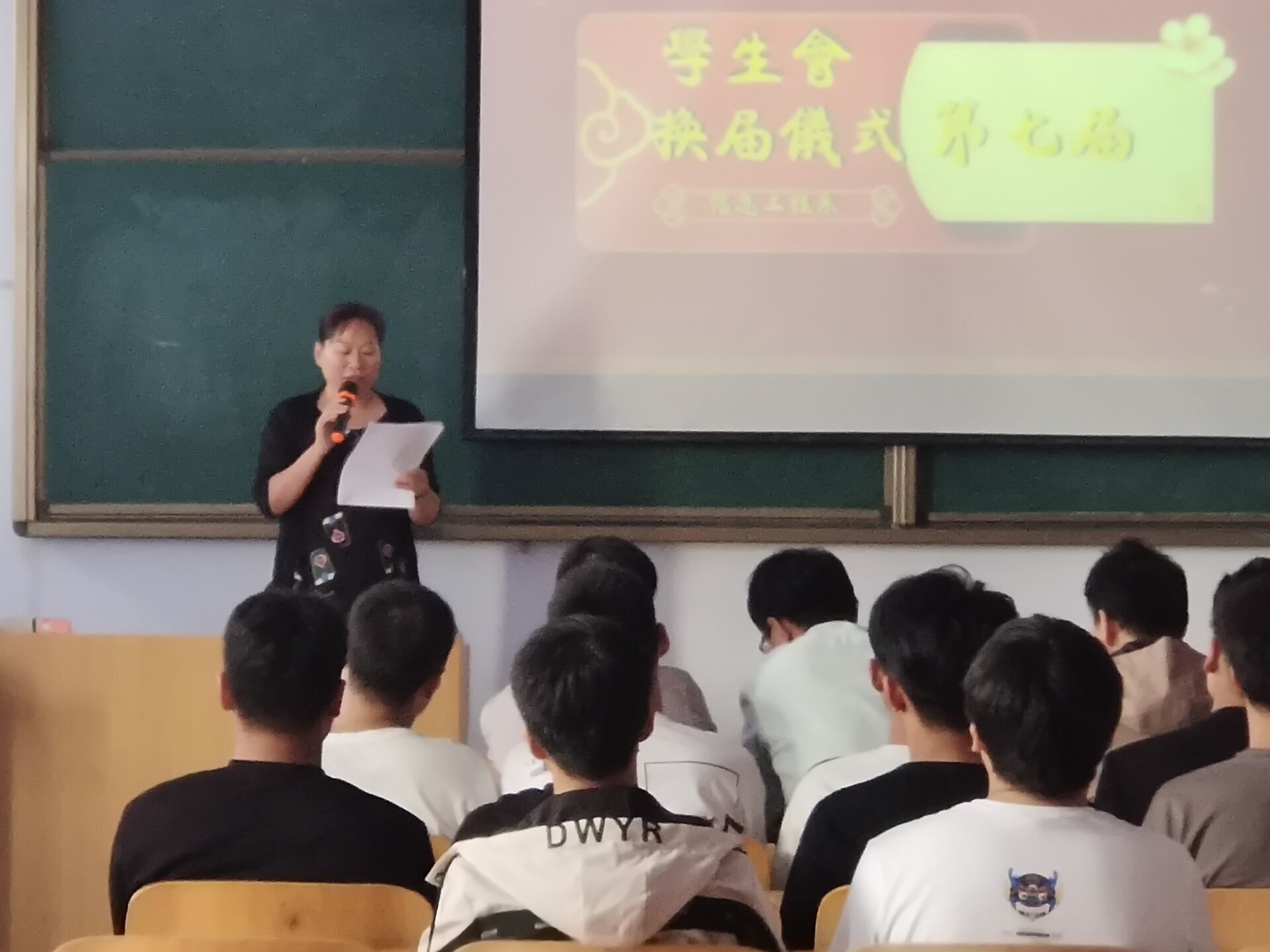 ????陈晓红主任代表信息工程系党总支讲话,对新一届当选的学生干部表示祝贺,对为学生会辛勤付出的往届学生干部表示感谢,感谢过去的一年里,学生会在系部学生科的组织领导下,坚持“自我教育,自我管理,自我服务”的工作中心,刻苦努力、积极进取、不断创新,开展了一系列卓有成效的工作。陈晓红对新一届的学生会和与会人员提出希望和要求:一,新一届学生会成员,要牢记学生会宗旨,勇于创新、锐意进取。二,希望每位学生干部都要树立“以服务为本”的工作理念,以服务学生,服务系部为己任。 三,希望全体学生会成员注重自身综合素质的培养和提高,并以此提高整个学生会的工作能力和工作水平。?四,希望学生会的各个部门,齐心合力,团结协作,增强学生会的凝聚力。