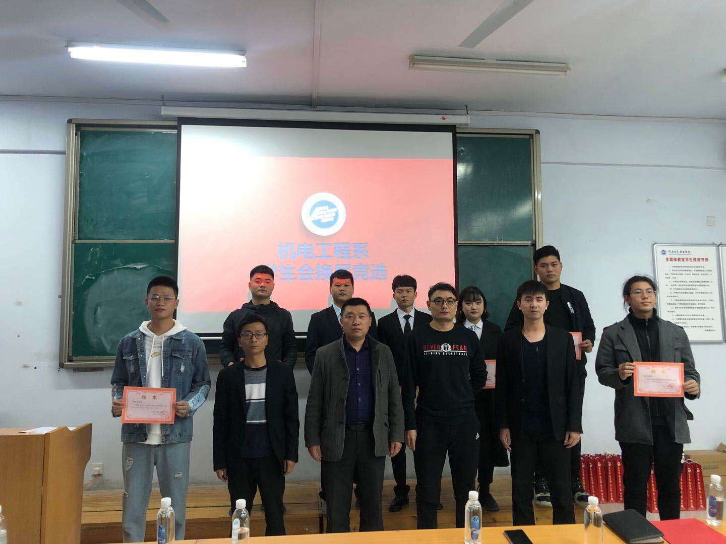 10月28日下午,机电工程系在教学楼A410教室举行了机电工程系第八届学生会干部换届大会。机电工程系负责人张红凯、冯振华,系团总支负责人杜羽、系学生科程文浩、徐亚龙老师、班主任代表赵鸿义老师和系第七届学生会主席团主席李伟乾参加了此次大会。
