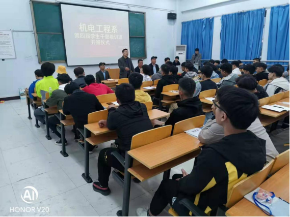 为了进一步加强学生干部队伍建设,提升学生干部整体素质,提高学生干部的管理能力,培养学生干部的责任意识。机电工程系计划于2019年11月4日至11月20日之间,对2019级学生干部进行培训。培训内容有如何当好学生干部、学生干部的工作方法及技巧、学生干部参与处理校园突发事件和学院、系部下发的相关管理规定等。