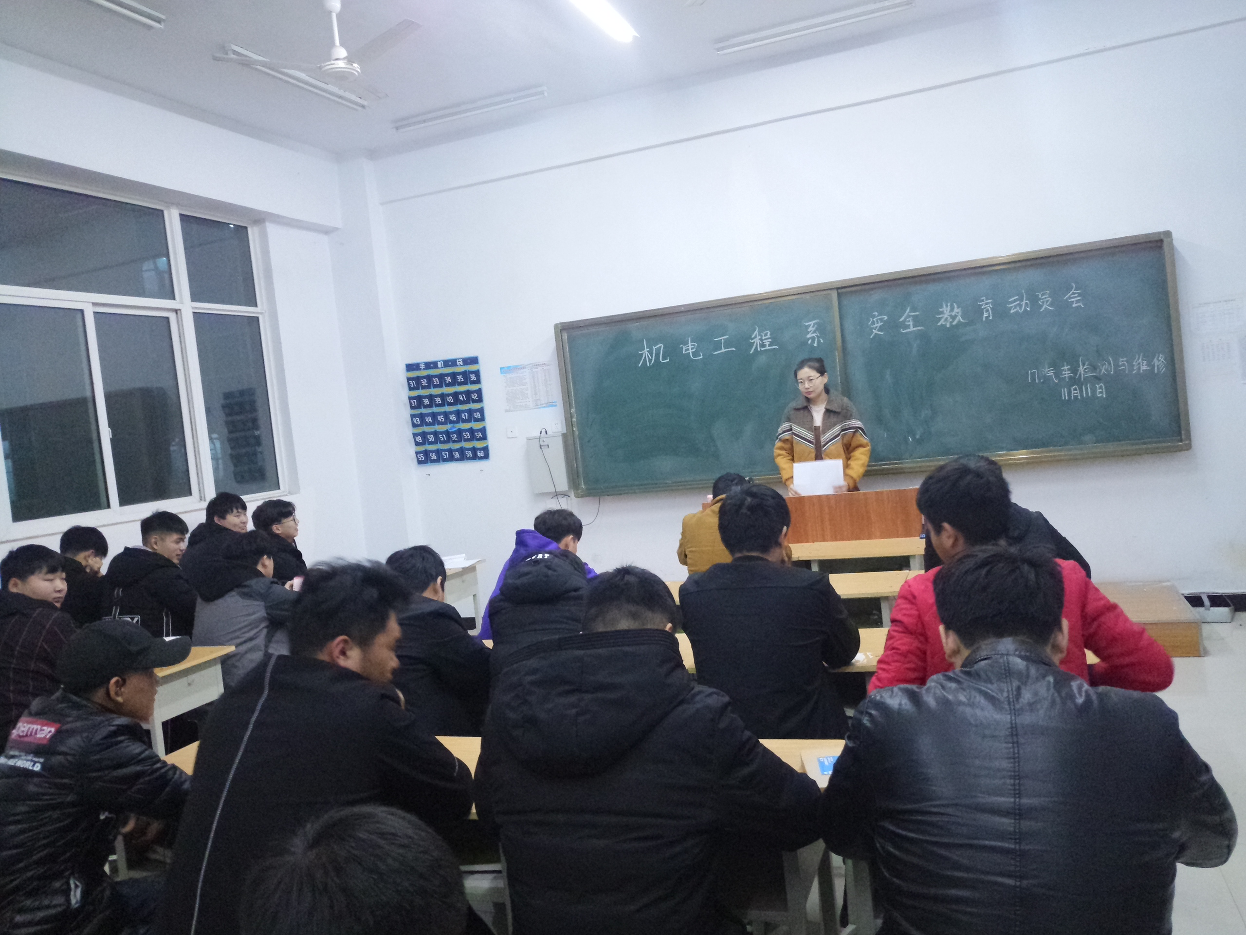 ????为进一步加强机电工程系安全教育工作,增强师生的安全防范意识,提高师生安全自救自护能力,保障师生的生命财产安全,确保校园的安全稳定和谐,机电工程积极响应学院活动要求,自2018年11月5日起开展了一系列安全教育宣传月活动。