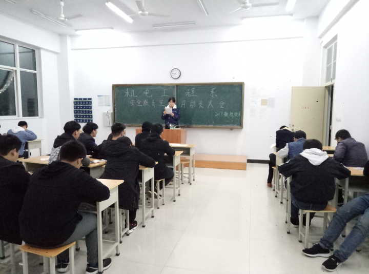 ????一是召开安全教育主题班会。机电系以班级为单位召开“安全教育月”主题班会,向全系学生宣传安全教育的重要性和必要性。结合防火防电、网贷陷阱、财物失窃、交通安全、食品卫生等安全隐患事件,师生进行了积极讨论。学生们畅所欲言,积极反映身边存在的安全隐患,并提出自己的建议。到位的宣传强化了同学们安全无小事、安全重如山的安全责任观念。