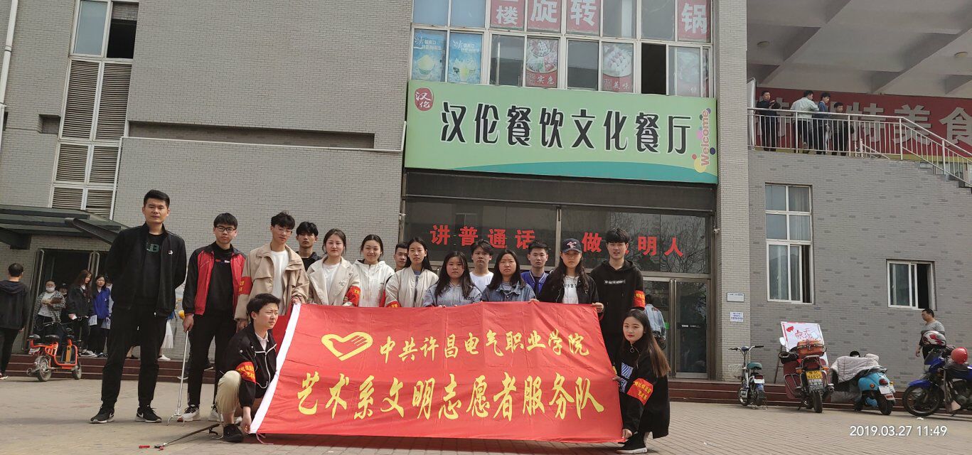 ????为进一步弘扬“学习雷锋、奉献他人、提升自己”的志愿服务精神,3月13-20日,艺术系团总支策划开展“学雷锋,环保校园行”的志愿服务活动。本次活动主要围绕美化清洁校园环境和帮助引导学生就餐时养成良好习惯而展开。