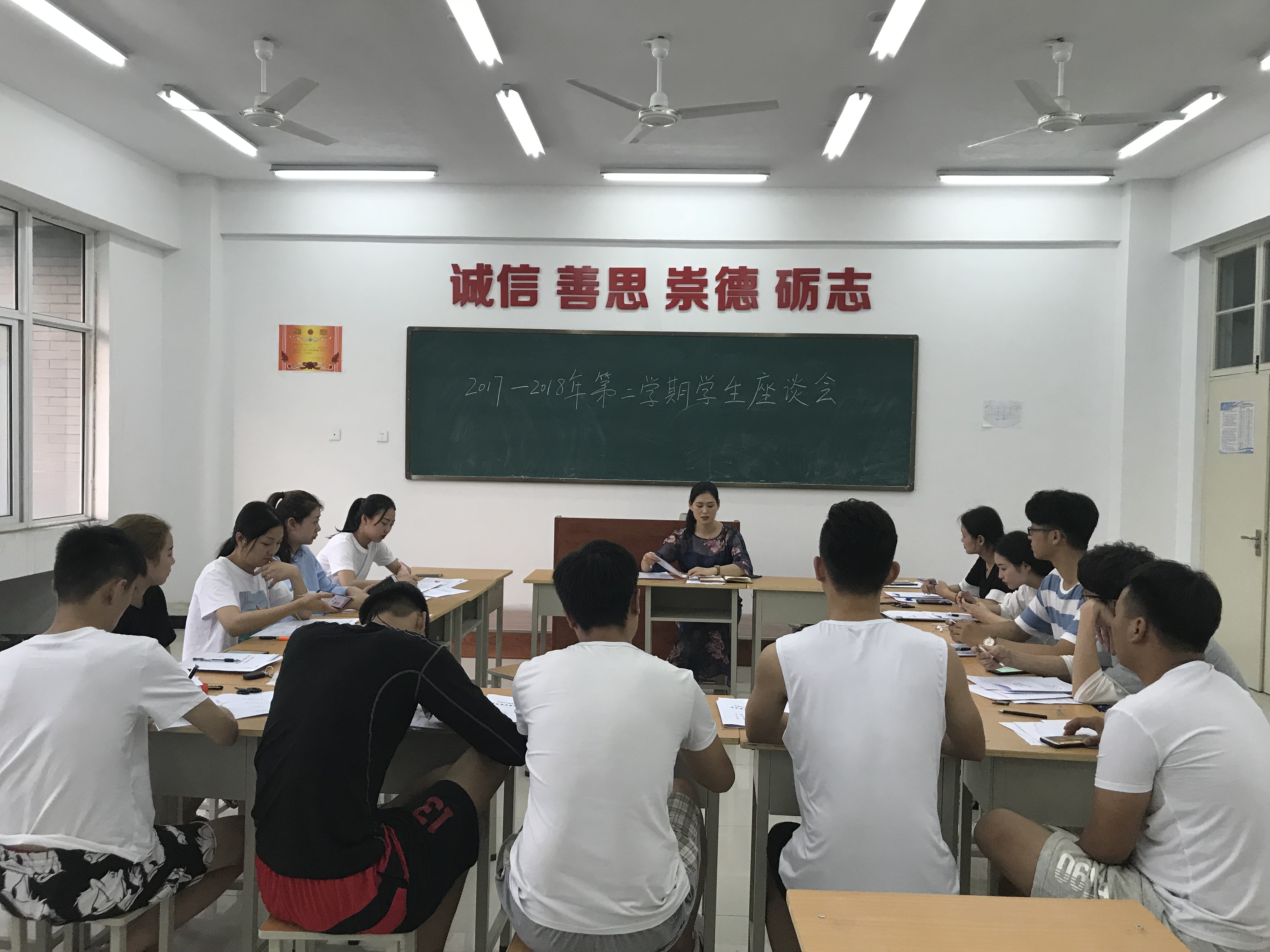 座谈会围绕学生对教学管理方面、对教师教学方面、对学生学习方面及其他方面这四项展开,师生共同踊跃发言,提出自己的意见与建议。发言讨论的内容涵盖了有关课程安排、教师教学教法、早操及晚自习纪律、寝室物品维修、寝室断电安排、毕业实习及就业等多方面的内容。