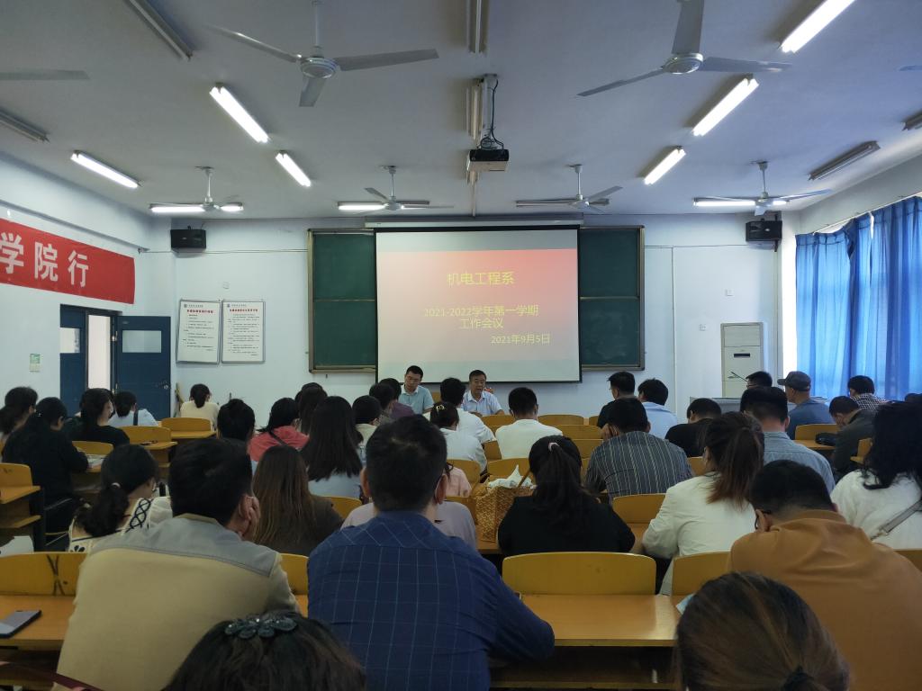 本次会议是机电工程系9月3日参加学院组织的教育教学工作会议后,于9月4日召集坐班人员进行酝酿,经过认真筹备,组织召开的新学期工作会议。